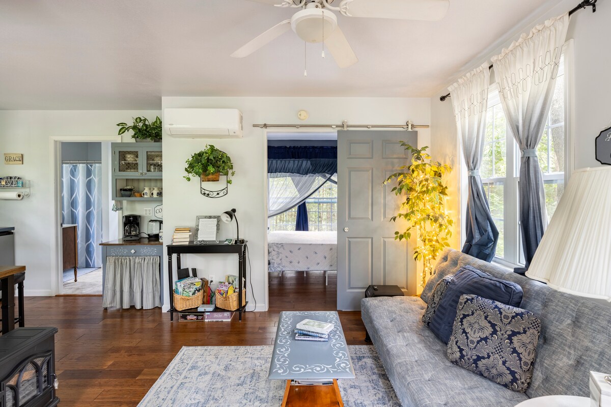 ಈ ವಿಶಿಷ್ಟ ಸಣ್ಣ ಮನೆಯಲ್ಲಿ ಆಹ್ಲಾದಕರ ಆಧುನಿಕ ವಾಸ್ತವ್ಯವನ್ನು ಆನಂದಿಸಿ. ಈ ಮನೆಯು ಸಂಪೂರ್ಣ ಅಡುಗೆಮನೆ, ಲಿವಿಂಗ್ ಸ್ಪೇಸ್, ಬೆಡ್ರೂಮ್ ಮತ್ತು ಪೂರ್ಣ ಬಾತ್ರೂಮ್ ಅನ್ನು ಹೊಂದಿದೆ. ಒಂದು ಸಣ್ಣ ಮನೆಗೆ ಈ ಸ್ಥಳವು ಆಕರ್ಷಕವಾಗಿ ರೂಮ್ನಲ್ಲಿದೆ! ಸಾಕಷ್ಟು ಪಾರ್ಕಿಂಗ್ ಮತ್ತು ಕಾಡುಗಳಿಂದ ಸುತ್ತುವರೆದಿರುವ ಸುಂದರವಾದ ಅಂಗಳವನ್ನು ನೋಡುವ ಆರಾಮದಾಯಕ ಮುಂಭಾಗದ ಮುಖಮಂಟಪವಿದೆ. ಅನುಕೂಲಕರವಾಗಿ ನೆಲೆಗೊಂಡಿದೆ, ದಂಪತಿಗಳು ಅಥವಾ ಸಿಂಗಲ್ಗಳಿಗೆ ಸೂಕ್ತವಾಗಿದೆ, ಒಳಾಂಗಣದಲ್ಲಿ ಮತ್ತು ಹೊರಗೆ ಅದ್ಭುತ ವಾತಾವರಣ.
