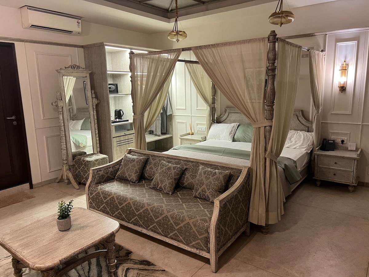 Welcome to the Palash Room, where elegance meets tranquility. Thoughtfully designed for travelers seeking comfort, privacy and a relaxed stay, the Palash Room offers a perfect blend of modern amenities and natural warmth. Immerse yourself in a soothing ambience inspired by nature, with tasteful décor, soft lighting, and premium furnishings that ensure a memorable and restful stay.
