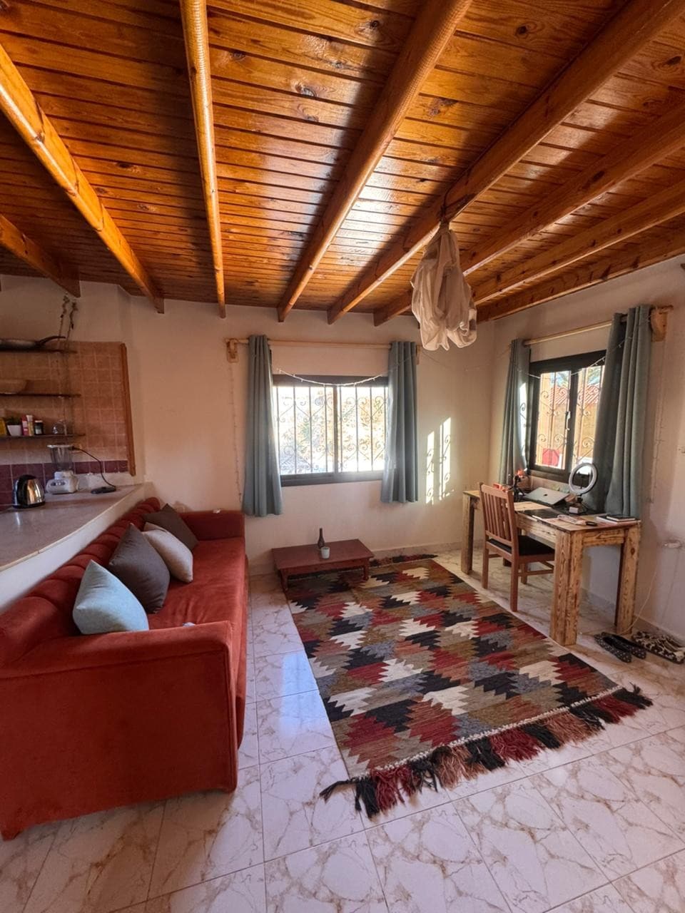 This one is its own little world, tucked in Assalah a few minutes from the beach. This 1-bedroom house is newly finished and personally furnished - simple, thoughtful, and made to be truly lived in. Inside, the space has everything you need, with a modern finish that still feels warm. The real magic is outside. A huge yard sits with a shaded seating area that naturally becomes the gathering point. Mornings drift by slowly here, and evenings tend to fill with friends, tea, and laughter.