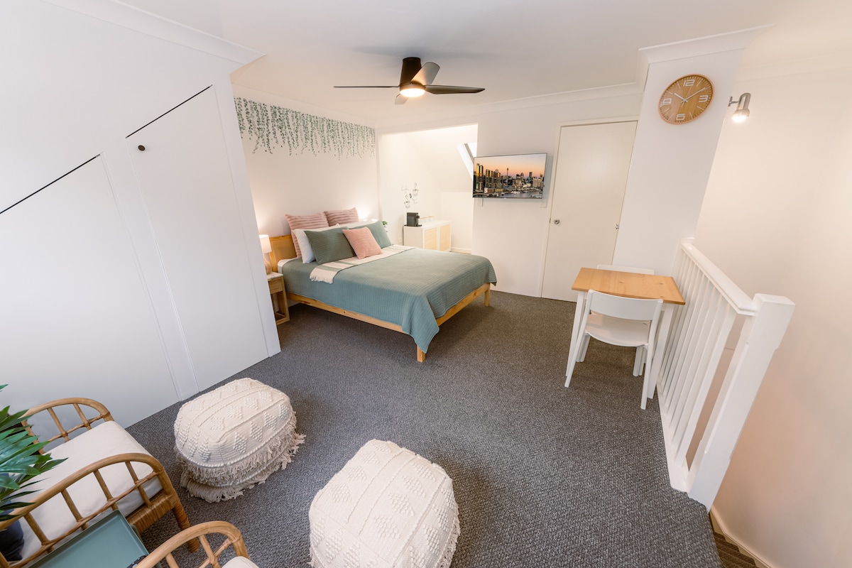 ಆದರ್ಶಪ್ರಾಯವಾಗಿ ಸುಂದರವಾದ ಎಲೆಗಳ ಡಾರ್ಲಿಂಗ್ಹರ್ಸ್ಟ್ನ ಹೃದಯಭಾಗದಲ್ಲಿದೆ. ಈ ಮೇಲಿನ ಮಹಡಿಯ ಗಾತ್ರದ ಸ್ಟುಡಿಯೋ ಅಪಾರ್ಟ್ಮೆಂಟ್ ನಿಜವಾದ ಸಿಡ್ನಿ ಸ್ಥಳೀಯ ಜೀವನಶೈಲಿಯನ್ನು ಅನುಭವಿಸಲು ಬಯಸುವ ಯಾರಿಗಾದರೂ ಅತ್ಯಗತ್ಯವಾಗಿರುತ್ತದೆ. ಡಾರ್ಲಿಂಗ್ಹರ್ಸ್ಟ್ನ ರೋಮಾಂಚಕ ಕೆಫೆ ದೃಶ್ಯ, ಬಾರ್ಗಳು ಮತ್ತು ರೆಸ್ಟೋರೆಂಟ್ಗಳನ್ನು ನೀವು ಬಹಳ ಕಡಿಮೆ ದೂರದಲ್ಲಿ ಕಾಣುತ್ತೀರಿ. ನಮ್ಮ ನವೀಕರಿಸಿದ ಘಟಕವು ನವೀಕರಿಸಿದ ಅಡುಗೆಮನೆ ಮತ್ತು ಹೊಸ ಬಾತ್ರೂಮ್ ಅನ್ನು ಹೊಂದಿದೆ. ಬಾತ್ರೂಮ್ ನೀವು ಬಳಸಲು ವಾಷಿಂಗ್ ಮೆಷಿನ್ ಅನ್ನು ಸಹ ಹೊಂದಿದೆ. ಅಡುಗೆಮನೆಯು ಫ್ರಿಜ್, ಎರಡು ಬರ್ನರ್ ಎಲೆಕ್ಟ್ರಿಕ್ ಸ್ಟೌವ್ ಟಾಪ್ ಮತ್ತು 28L ಏರ್ ಫ್ರೈಯರ್ ಕನ್ವೆಕ್ಷನ್ ಮೈಕ್ರೊವೇವ್ ಅನ್ನು ಹೊಂದಿದೆ.