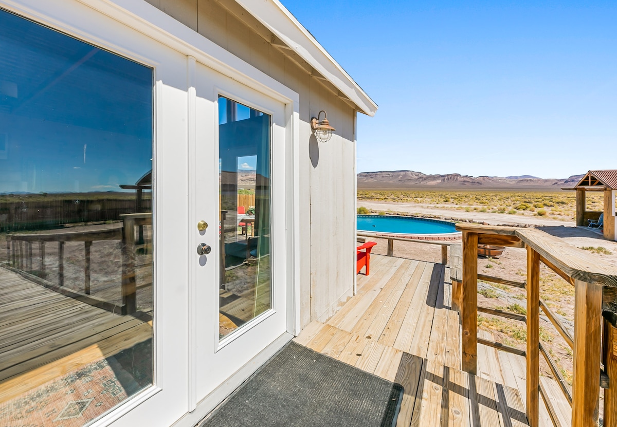 ಡೆತ್ ವ್ಯಾಲಿ ನ್ಯಾಷನಲ್ ಪಾರ್ಕ್ ಬಳಿ ಇರುವ ನಮ್ಮ ಇತ್ತೀಚೆಗೆ ನವೀಕರಿಸಿದ ಮನೆಯಲ್ಲಿ ದೊಡ್ಡ ಸುಂದರವಾದ ಆಕಾಶವನ್ನು ಆನಂದಿಸಿ (ಜಂಕ್ಷನ್ಗೆ 25 ನಿಮಿಷಗಳು, ಮಾಹಿತಿ ಕೇಂದ್ರಕ್ಕೆ 1 ಗಂಟೆ) ಲಗತ್ತಿಸಲಾದ ಸಂಪೂರ್ಣ ಸ್ನಾನದ ತೊಟ್ಟಿಗಳು, ಸಂಪೂರ್ಣ ಅಡುಗೆಮನೆ, ದೊಡ್ಡ ಗ್ರಾನೈಟ್ ದ್ವೀಪ ಮತ್ತು ಆರಾಮದಾಯಕ ಲಿವಿಂಗ್ ರೂಮ್, ವಾಷರ್ ಮತ್ತು ಡ್ರೈಯರ್ ಹೊಂದಿರುವ ಎರಡು ಮಾಸ್ಟರ್ ಬೆಡ್ರೂಮ್ಗಳನ್ನು ಒಳಗೊಂಡಿರುವ ನಮ್ಮ ಮನೆ ವಿಹಾರಗಳಿಗೆ ಸೂಕ್ತವಾಗಿದೆ. ಹಿತಕರವಾಗಿ ಆನಂದಿಸಲು ಹಿತ್ತಲು, ಒಳಾಂಗಣ ಮತ್ತು ಡೆತ್ ವ್ಯಾಲಿಯಲ್ಲಿನ ಪರ್ವತ ಶ್ರೇಣಿಯ ನೋಟಗಳು ಸೇರಿದಂತೆ ವಿಶಾಲವಾದ ಹೊರಾಂಗಣ ಸ್ಥಳಗಳಿವೆ. ಹತ್ತಿರದ ಆಕರ್ಷಣೆಗಳಲ್ಲಿ ಆ್ಯಶ್ ಮೆಡೋಸ್ ವನ್ಯಜೀವಿ ಆಶ್ರಯ ಮತ್ತು ಇನ್ನಷ್ಟು ಸೇರಿವೆ.