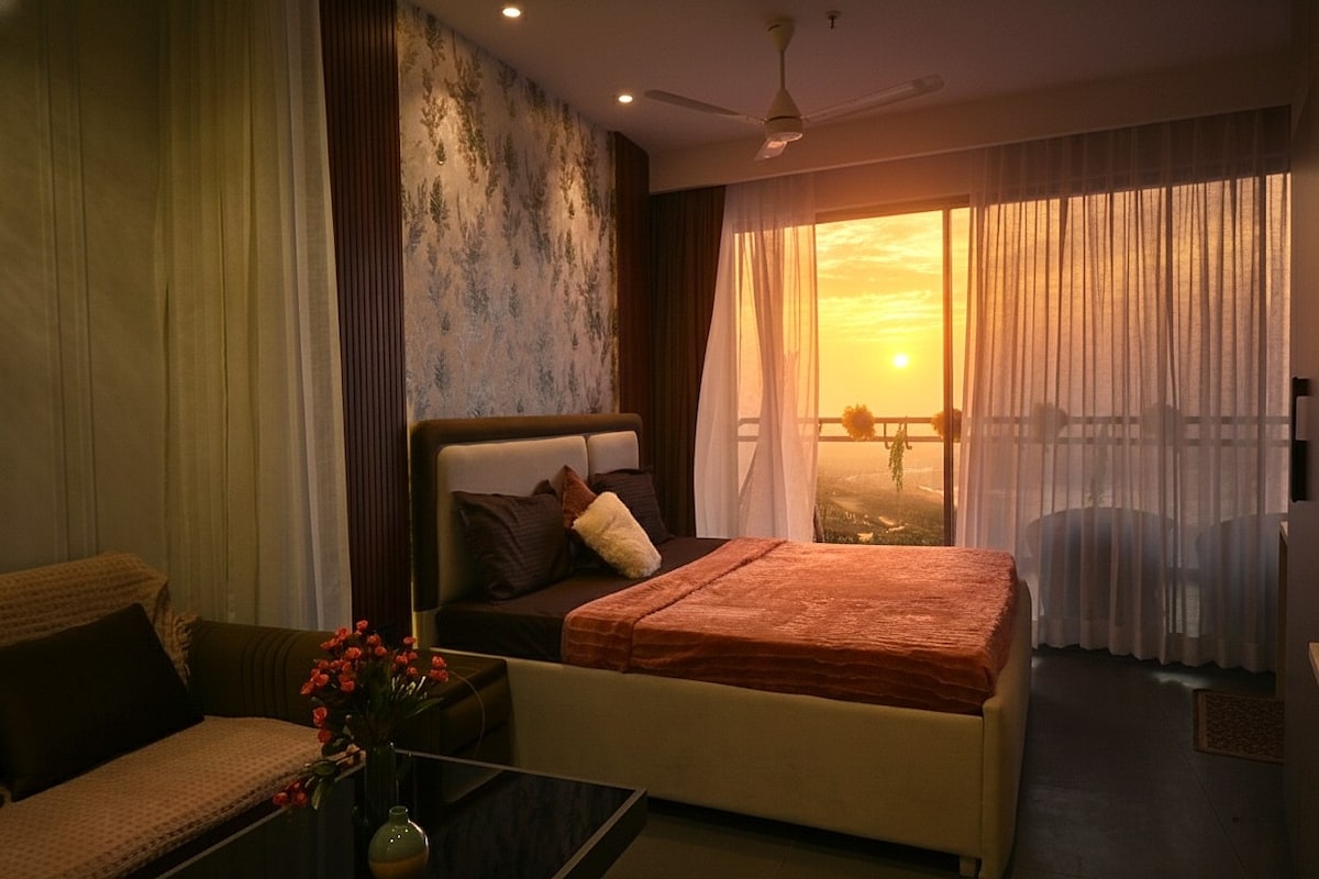 Float above the city at this peaceful, high-rise sanctuary with panoramic views of the Yamuna River and skyline. Whether you're on a romantic escape, work trip, or staycation, Cloud 33 is designed for both comfort and style. ✔ Prime Location – Only 100m from the metro for easy city access ✔ Scenic Views – Private balcony with river + skyline sunsets ✔ Ideal for Couples & Professionals – Cozy, modern, fully-equipped