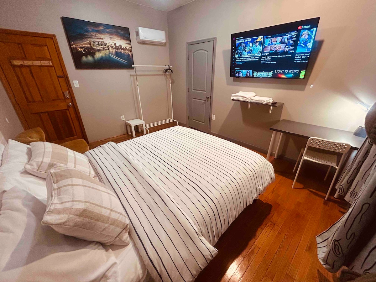 ಖಾಸಗಿ ಮತ್ತು ವಿಶಾಲವಾದ ಅಪಾರ್ಟ್ಮೆಂಟ್. w/ ಉಚಿತ ಪಾರ್ಕಿಂಗ್ ಮತ್ತು ಸ್ಮಾರ್ಟ್ ಟಿವಿ