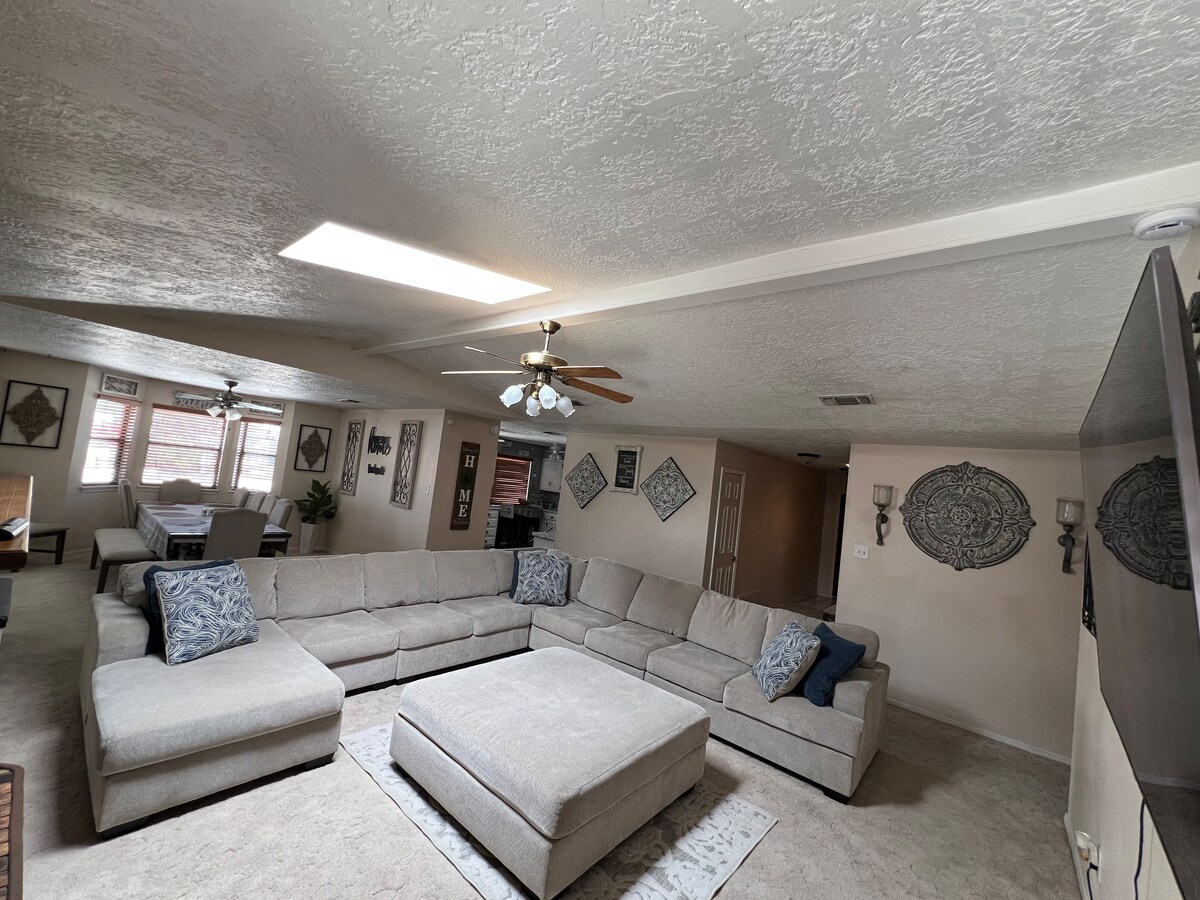 This beautiful, three-bedroom two-bath home is very spacious and comfortable for you and your family. It has two large living areas with a TV and arcade room. A large laundry room with a washer and dryer for your convenience are available. The home also provides a wonderful back patio for grilling and enjoying the great outdoors. Perfect for pets and children to play in the back yard as well. It is located in a good neighborhood. Extra amenities can be provided upon request. Just ask!