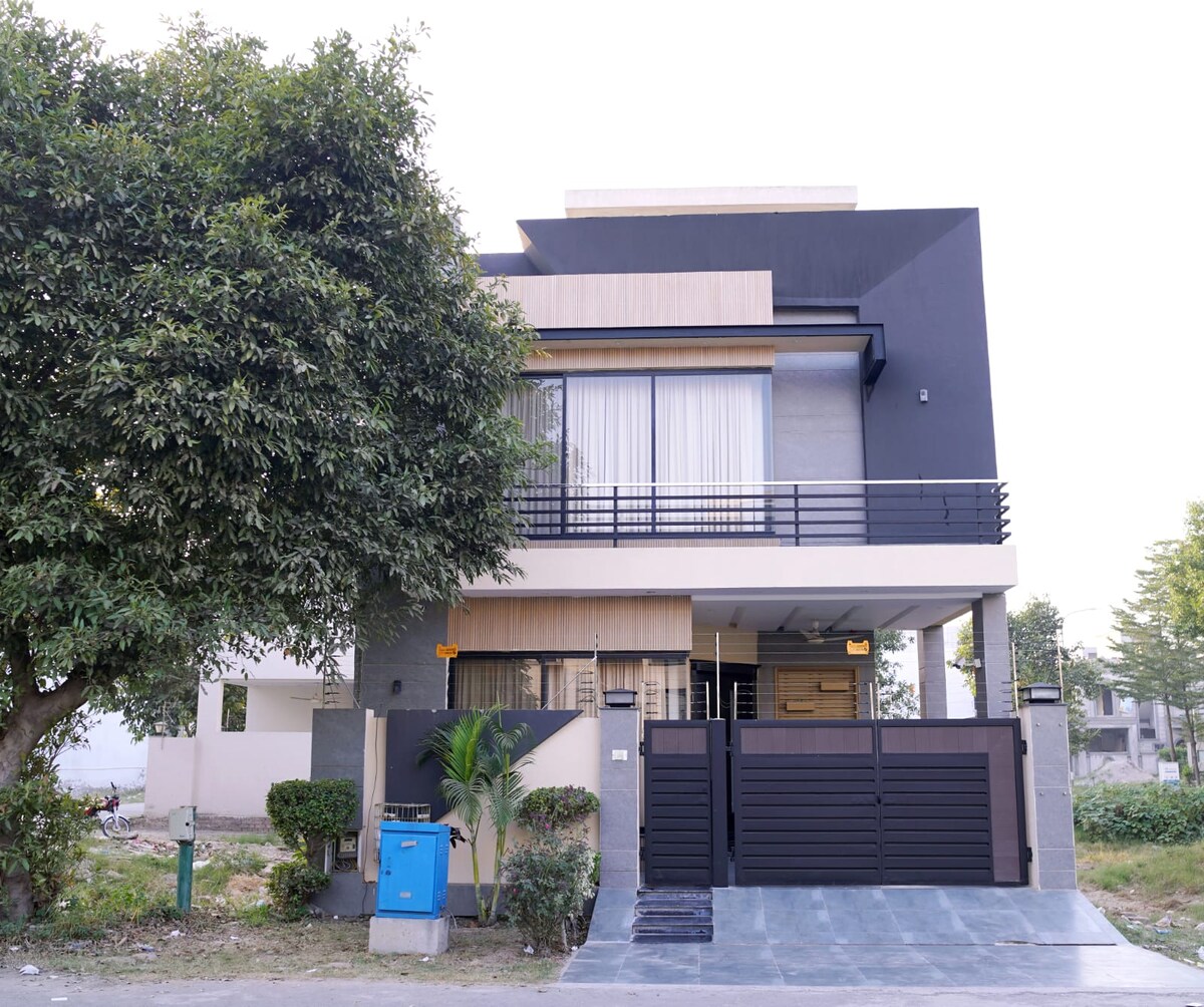 ಈ ಶಾಂತಿಯುತ ಸ್ಥಳದಲ್ಲಿ ಇಡೀ ಕುಟುಂಬದೊಂದಿಗೆ ವಿಶ್ರಾಂತಿ ಪಡೆಯಿರಿ. ಅಸ್ಕರಿ 11 ರ ಪಕ್ಕದಲ್ಲಿರುವ DHA ಹಂತ 9 ಟೌನ್ನಲ್ಲಿ ಹೊಚ್ಚ ಹೊಸ ಸ್ನೇಹಶೀಲ ವಿಲ್ಲಾ, ಸುರಕ್ಷಿತ ಮತ್ತು ಅಚ್ಚುಕಟ್ಟಾದ ಸ್ವಚ್ಛ ಆಯ್ಕೆ. PKLI, ಬೆಡಿಯನ್ ರಸ್ತೆ, DHA ಹಂತ 5 ಮತ್ತು 6 ಮತ್ತು ಅವರ ವಾಣಿಜ್ಯ ಮಾರುಕಟ್ಟೆಗಳಿಗೆ ಬಹಳ ಹತ್ತಿರದಲ್ಲಿದೆ. ಇದು ಟಿವಿ ಲೌಂಜ್ ಮತ್ತು 6 ಕ್ಕೆ ಡೈನಿಂಗ್ ಟೇಬಲ್ ಹೊಂದಿರುವ 5 ಮಾರ್ಲಾ ಮನೆ. ಇದು 3 ಮಲಗುವ ಕೋಣೆ, 3.5 ಬಾತ್ರೂಮ್ಗಳನ್ನು ಹೊಂದಿದ್ದು, ಬಿಸಿ ನೀರನ್ನು ಹೊಂದಿದೆ. 40MBps ವೈಫೈ 24/7 ಲಭ್ಯವಿದೆ, ಔಷಧಿಗಳೊಂದಿಗೆ ಪ್ರಥಮ ಚಿಕಿತ್ಸಾ ಬಾಕ್ಸ್ ಸಂಪೂರ್ಣವಾಗಿ ಕ್ರಿಯಾತ್ಮಕ ಅಡುಗೆಮನೆ, ಟ್ರಾನ್ಸ್ವರ್ಲ್ಡ್ ಇಂಟರ್ನೆಟ್ ಮತ್ತು ಟ್ರೂ ಟಿವಿ.