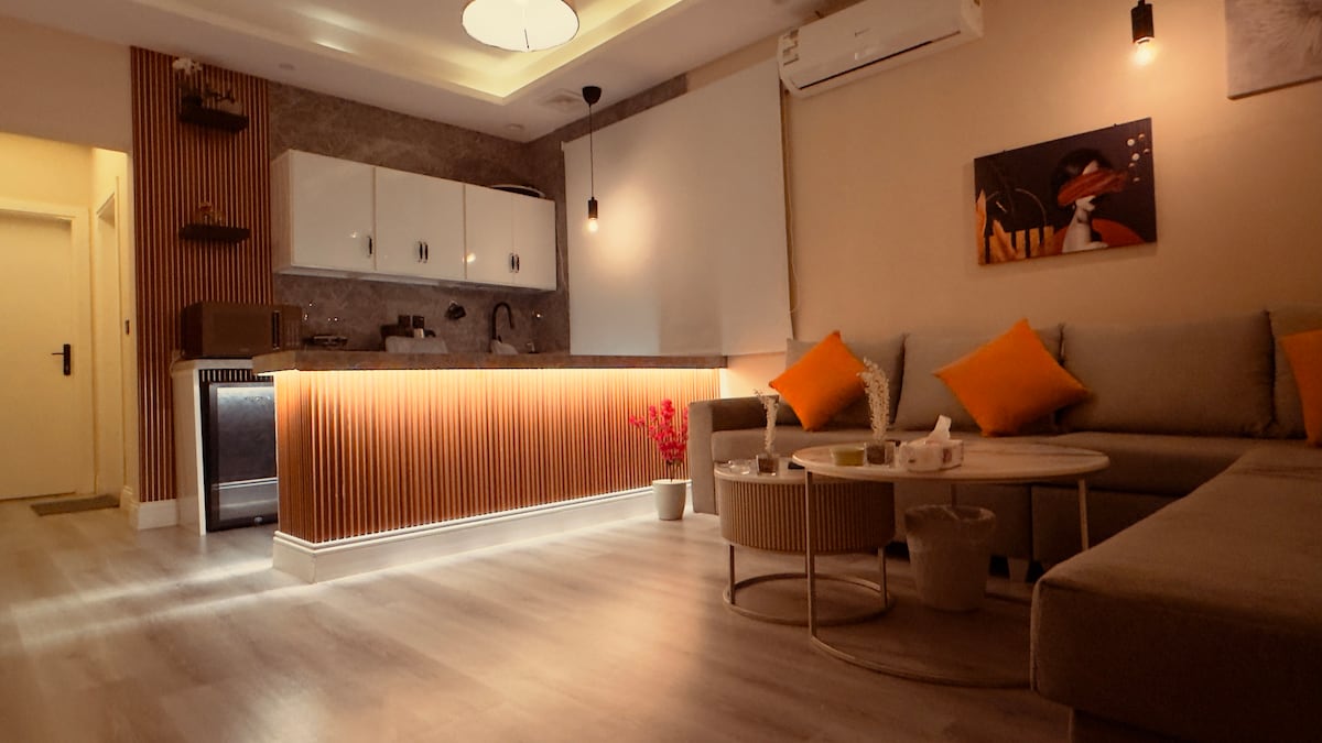 ರಿಯಾದ್ನ ಅತ್ಯಂತ ಭರವಸೆಯ ಸ್ಥಳಗಳಲ್ಲಿ ಒಂದಾದ ಈ ಸುಂದರವಾಗಿ ವಿನ್ಯಾಸಗೊಳಿಸಲಾದ, ಹೊಚ್ಚ ಹೊಸ ಅಪಾರ್ಟ್ಮೆಂಟ್ನಲ್ಲಿ ಆಧುನಿಕ ಜೀವನವನ್ನು ಅನುಭವಿಸಿ! ಚಿಕ್ ಸ್ಪರ್ಶದಿಂದ ಚಿಂತನಶೀಲವಾಗಿ ಅಲಂಕರಿಸಲಾದ ಈ ಸೊಗಸಾದ ಸ್ಟುಡಿಯೋ ಆರಾಮ ಮತ್ತು ಕ್ರಿಯಾತ್ಮಕತೆಯ ಪರಿಪೂರ್ಣ ಸಮತೋಲನವನ್ನು ನೀಡುತ್ತದೆ. ತೆರೆದ ವಿನ್ಯಾಸ ಮತ್ತು ಸಮಕಾಲೀನ ಪೀಠೋಪಕರಣಗಳು ಬೆಚ್ಚಗಿನ ವಾತಾವರಣವನ್ನು ಸೃಷ್ಟಿಸುತ್ತವೆ. ನೀವು ವಿಶ್ರಾಂತಿ ಪಡೆಯುತ್ತಿರಲಿ, ದೂರದಿಂದಲೇ ಕೆಲಸ ಮಾಡುತ್ತಿರಲಿ ಅಥವಾ ಪ್ರೀತಿಪಾತ್ರರೊಂದಿಗೆ ಗುಣಮಟ್ಟದ ಸಮಯವನ್ನು ಕಳೆಯುತ್ತಿರಲಿ, ಈ ಸ್ಥಳವನ್ನು ಅಂತಿಮ ಆರಾಮಕ್ಕಾಗಿ ವಿನ್ಯಾಸಗೊಳಿಸಲಾಗಿದೆ.