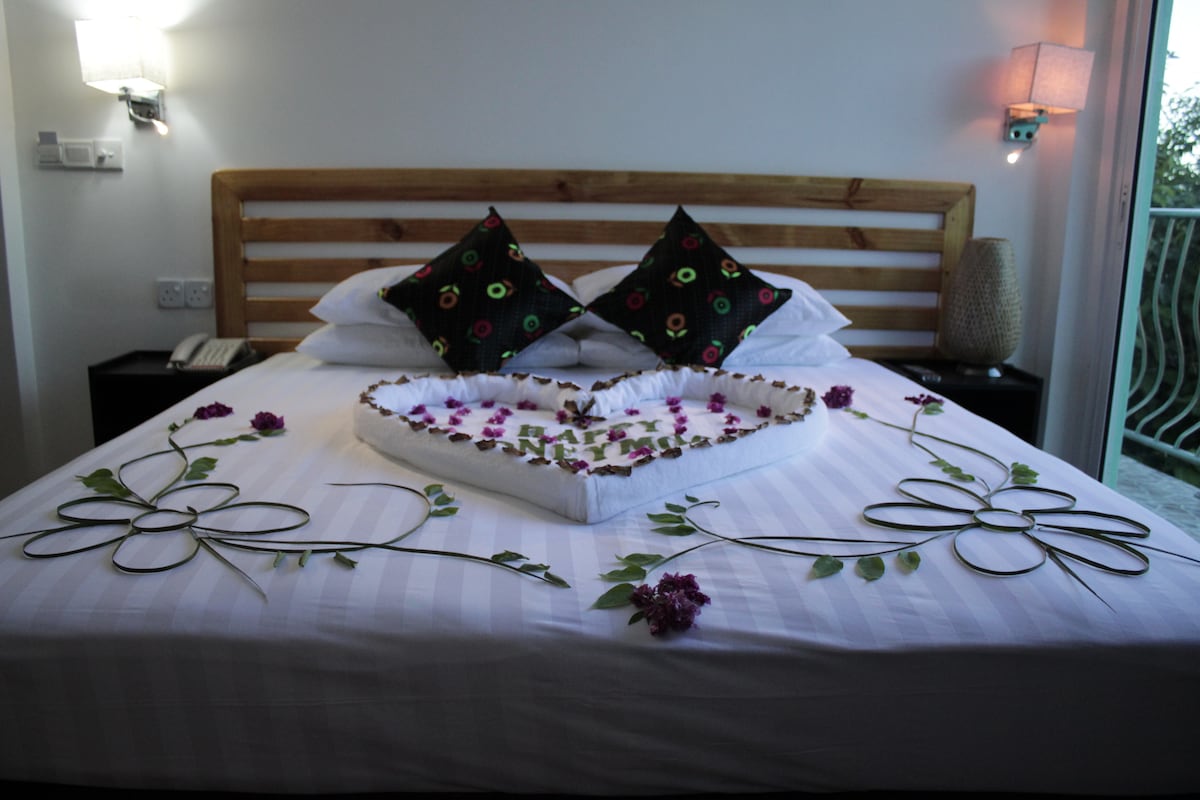 ಈ ಆರಾಮದಾಯಕ ಕೋಣೆಯಲ್ಲಿ ನಿಮ್ಮ ಖಾಸಗಿ ಬಾಲ್ಕನಿಯಿಂದ ಬೆರಗುಗೊಳಿಸುವ ಸಮುದ್ರದ ವೀಕ್ಷಣೆಗಳನ್ನು ಆನಂದಿಸಿ. ದಂಪತಿಗಳು, ಏಕಾಂಗಿ ಪ್ರಯಾಣಿಕರು ಮತ್ತು ಕುಟುಂಬಗಳಿಗೆ ಸೂಕ್ತವಾಗಿದೆ. ಆಧುನಿಕ ಸೌಲಭ್ಯಗಳು, A/C, ಉಚಿತ ವೈಫೈ, ಪ್ರೈವೇಟ್ ಬಾತ್ ರೂಮ್ ಮತ್ತು ಬ್ರೇಕ್ಫಾಸ್ಟ್ನೊಂದಿಗೆ ಕಡಲತೀರದಿಂದ ಕೇವಲ ಮೆಟ್ಟಿಲುಗಳು ನಾವು ವ್ಯವಸ್ಥೆ ಮಾಡುತ್ತೇವೆ * ವ್ಹೇಲ್ ಶಾರ್ಕ್ ಮತ್ತು ಮಂಟಾ ರೇ ಸ್ನಾರ್ಕ್ಲಿಂಗ್, ನರ್ಸ್ ಶಾರ್ಕ್ ಸ್ನಾರ್ಕ್ಲಿಂಗ್, ಫಿಶ್ ಬ್ಯಾಂಕ್ ಸ್ನಾರ್ಕ್ಲಿಂಗ್ * ಡಾಲ್ಫಿನ್ ಕ್ರೂಸ್ಗಳು, ಮರಳು ಬ್ಯಾಂಕ್ ಭೇಟಿಗಳು ಮತ್ತು ಪಿಕ್ನಿಕ್ ದ್ವೀಪ ಭೇಟಿಗಳು * ಸ್ಕೂಬಾ ಡೈವಿಂಗ್ * ರೊಮ್ಯಾಂಟಿಕ್ ಬೀಚ್ ಡಿನ್ನರ್ * ಹೆಚ್ಚುವರಿ ಬೆಡ್ ಆಯ್ಕೆಯೊಂದಿಗೆ ಕುಟುಂಬ-ಸ್ನೇಹಿ * ಟ್ರಾನ್ಪೋರ್ಟ್ ವ್ಯವಸ್ಥೆಗಳು