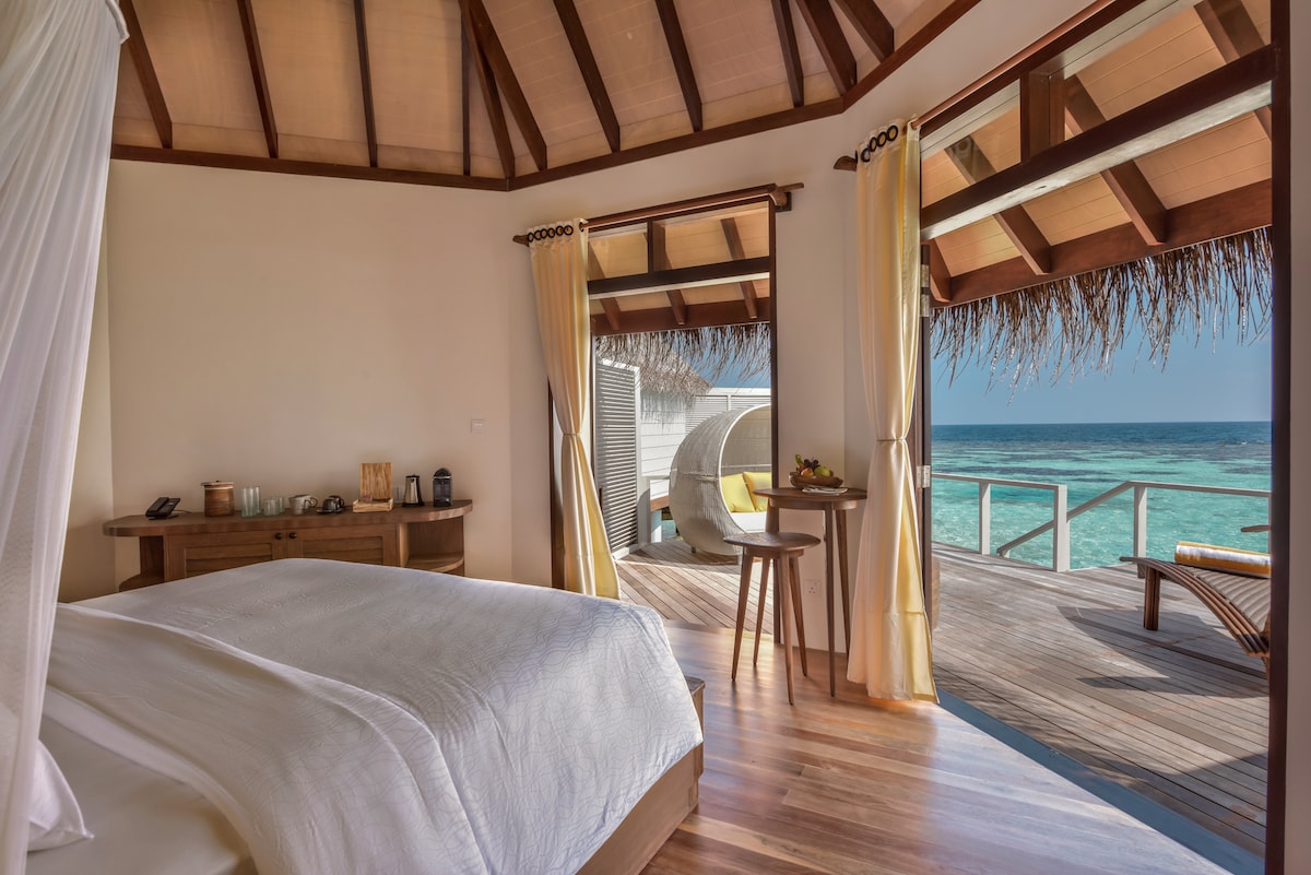 ವೈಡೂರ್ಯದ ನೀರು, ಅದರ ಬಿಳಿ ಮರಳು ಮತ್ತು ಹವಳದ ಉದ್ಯಾನಗಳೊಂದಿಗೆ, ರೆಸಾರ್ಟ್ ದಂಪತಿಗಳಿಗೆ ಪ್ರಣಯ ವಿಹಾರ ಮತ್ತು ಕುಟುಂಬಗಳು, ಅಂತ್ಯವಿಲ್ಲದ ಸಾಹಸಗಳು ಮತ್ತು ವಿನೋದದ ಸಾಧ್ಯತೆಯನ್ನು ನೀಡುತ್ತದೆ > 5 ಸ್ಟಾರ್ ಪ್ರೈವೇಟ್ ಐಲ್ಯಾಂಡ್ ರೆಸಾರ್ಟ್ನಲ್ಲಿ ಸಂಪೂರ್ಣ ವಾಟರ್ ಬಂಗಲೆ > ಬ್ರ್ಯಾಂಡ್ ನ್ಯೂ > 85 ಚದರ ಮೀಟರ್ > 30 ನಿಮಿಷಗಳ ಸೀಪ್ಲೇನ್ ಸವಾರಿ > ಗರಿಷ್ಠ 2 ವಯಸ್ಕರು ಮತ್ತು 3 ಮಕ್ಕಳು > ಹೆಚ್ಚುವರಿ ಶುಲ್ಕಗಳ ಮೇಲೆ ವಿಮಾನ ನಿಲ್ದಾಣ ವರ್ಗಾವಣೆ, ಊಟಗಳು, ಪಾನೀಯಗಳು ದಯವಿಟ್ಟು, ಮಾಲೆ ಅಂತರರಾಷ್ಟ್ರೀಯ ವಿಮಾನ ನಿಲ್ದಾಣಕ್ಕೆ ಮತ್ತು ಅಲ್ಲಿಂದ ಸಾರಿಗೆ ವ್ಯವಸ್ಥೆ ಮಾಡಲು ರಿಸರ್ವೇಶನ್ ವಿನಂತಿಯನ್ನು ಕಳುಹಿಸುವ ಮೊದಲು ನನ್ನನ್ನು ಪಿಂಗ್ ಮಾಡಿ.