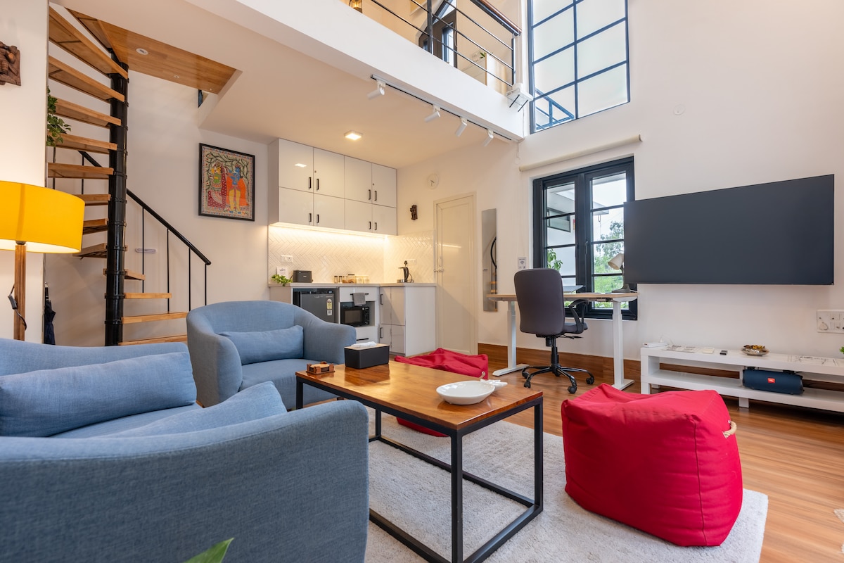 ಬೆಂಗಳೂರಿನ ಹೃದಯಭಾಗದಲ್ಲಿರುವ ಈ ಸೂರ್ಯನಿಂದ ಒಣಗಿದ ಪೆಂಟ್ಹೌಸ್ ಲಾಫ್ಟ್ ಅನ್ನು ಅನುಭವಿಸಿ. ನೈಸರ್ಗಿಕ ಬೆಳಕಿನಿಂದ ಸ್ಥಳವನ್ನು ಪ್ರವಾಹಕ್ಕೆ ತಳ್ಳುವ ಸ್ಕೈಲೈಟ್ಗಳು, ಪ್ರಶಾಂತವಾದ ಓದುವ ಕ್ಷಣಗಳಿಗಾಗಿ ಸುಂದರವಾಗಿ ನೇಮಿಸಲಾದ ಗ್ರಂಥಾಲಯ ಮತ್ತು ಹೊರಾಂಗಣದಲ್ಲಿ ವಿಶ್ರಾಂತಿ ಪಡೆಯಲು ವಿಶಾಲವಾದ ಒಳಾಂಗಣವನ್ನು ಒಳಗೊಂಡಿದೆ. ನೀವು ವ್ಯವಹಾರಕ್ಕಾಗಿ ಅಥವಾ ವಿರಾಮಕ್ಕಾಗಿ ಪಟ್ಟಣದಲ್ಲಿದ್ದರೂ, ನಮ್ಮ ಲಾಫ್ಟ್ ಐಷಾರಾಮಿ ಮತ್ತು ಸ್ಥಳದ ಪರಿಪೂರ್ಣ ಮಿಶ್ರಣವನ್ನು ನೀಡುತ್ತದೆ, ಇದು ಬೆಂಗಳೂರಿನ ಕೇಂದ್ರ ನೆರೆಹೊರೆಯಲ್ಲಿ ಸ್ಮರಣೀಯ ವಾಸ್ತವ್ಯವನ್ನು ಖಚಿತಪಡಿಸುತ್ತದೆ.