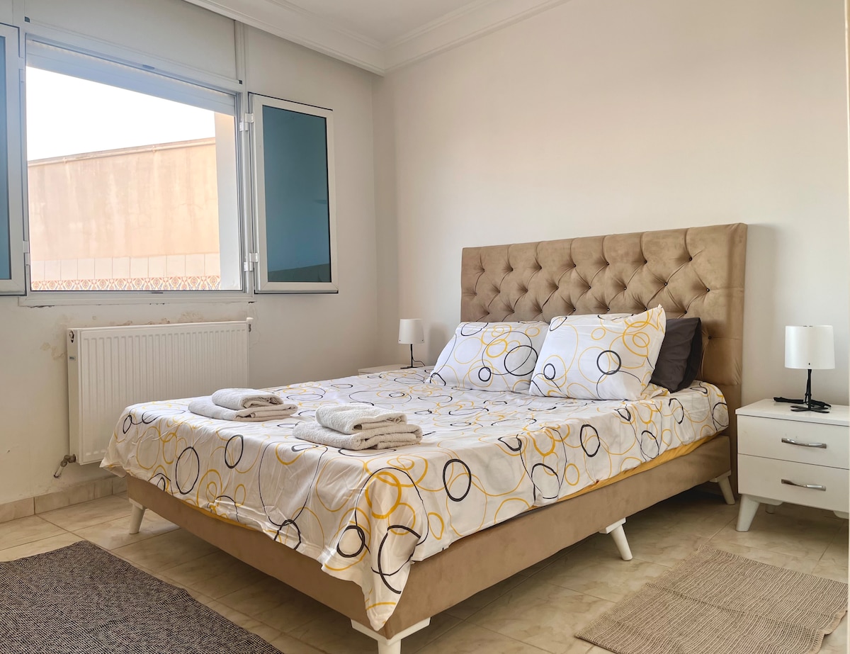 ಡಬಲ್ ಎಲಿವೇಟರ್ ಹೊಂದಿರುವ ಸುರಕ್ಷಿತ ನಿವಾಸದ 2 ನೇ ಮಹಡಿಯಲ್ಲಿರುವ ನಮ್ಮ ಆರಾಮದಾಯಕ ಮತ್ತು ಹವಾನಿಯಂತ್ರಿತ ಅಪಾರ್ಟ್ಮೆಂಟ್ಗೆ ನಿಮ್ಮನ್ನು ಸ್ವಾಗತಿಸಲು ನಾವು ಇಷ್ಟಪಡುತ್ತೇವೆ, ಇದು ಉದ್ಯಾನದ ಸುಂದರ ನೋಟವನ್ನು ನೀಡುತ್ತದೆ. 1 ರಿಂದ 4 ಜನರಿಗೆ ಸೂಕ್ತವಾಗಿದೆ, ಇದು ಟುನಿಸ್ನಿಂದ 20 ನಿಮಿಷಗಳ ದೂರದಲ್ಲಿದೆ, ಅಂಗಡಿಗಳು ಮತ್ತು ರೆಸ್ಟೋರೆಂಟ್ಗಳ ಬಳಿ. ಅಪಾರ್ಟ್ಮೆಂಟ್ 2 ಬೆಡ್ರೂಮ್ಗಳು, ಸುಸಜ್ಜಿತ ಅಡುಗೆಮನೆ, ಆಧುನಿಕ ಬಾತ್ರೂಮ್, ಹವಾನಿಯಂತ್ರಣ ಮತ್ತು ವೈ-ಫೈ ಅನ್ನು ಹೊಂದಿದೆ. ಉಚಿತ ಪಾರ್ಕಿಂಗ್ ಮತ್ತು ರೈಲು ನಿಲ್ದಾಣವು 10 ನಿಮಿಷಗಳ ನಡಿಗೆ ದೂರದಲ್ಲಿದೆ. ಸ್ಮರಣೀಯ ವಾಸ್ತವ್ಯಕ್ಕಾಗಿ ಈಗಲೇ ಬುಕ್ ಮಾಡಿ!