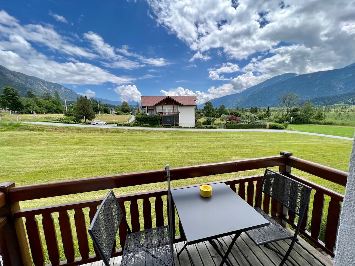 ಅಸಾಧಾರಣ ವೀಕ್ಷಣೆಗಳೊಂದಿಗೆ ಆರಾಮದಾಯಕವಾದ ಪರಿಸರ-ಚಾಲೆ – ಎಲ್ಲಾ ಋತುಗಳಿಗೆ ಸೂಕ್ತವಾಗಿದೆ ಈ ಆರಾಮದಾಯಕ ಮನೆಯನ್ನು 2022 ರಲ್ಲಿ ಅತ್ಯುನ್ನತ ಪರಿಸರ ಮಾನದಂಡಗಳೊಂದಿಗೆ ನಿರ್ಮಿಸಲಾಯಿತು. ಚಾಲೆ ಐಷಾರಾಮಿ ಅಡುಗೆಮನೆ ಮತ್ತು ವಿಶಾಲವಾದ ಊಟದ ಪ್ರದೇಶ, 2 ಬೆಡ್ರೂಮ್ಗಳು ಮತ್ತು 2 ಸ್ನಾನಗೃಹಗಳನ್ನು ಹೊಂದಿರುವ ಆರಾಮದಾಯಕವಾದ ದೊಡ್ಡ ಲಿವಿಂಗ್ ರೂಮ್ ಅನ್ನು ಒಳಗೊಂಡಿದೆ. ಲಿವಿಂಗ್ ಏರಿಯಾದಲ್ಲಿ ದೊಡ್ಡ ವಿಹಂಗಮ ಕಿಟಕಿಗಳು ದೊಡ್ಡ ಟೆರೇಸ್ಗೆ ನೇರ ಪ್ರವೇಶವನ್ನು ನೀಡುತ್ತವೆ ಮತ್ತು ಕಾರ್ನಿಕ್ ಮತ್ತು ಜೂಲಿಯನ್ ಆಲ್ಪ್ಸ್ನ ಅದ್ಭುತ ನೋಟವನ್ನು ನೀಡುತ್ತವೆ.