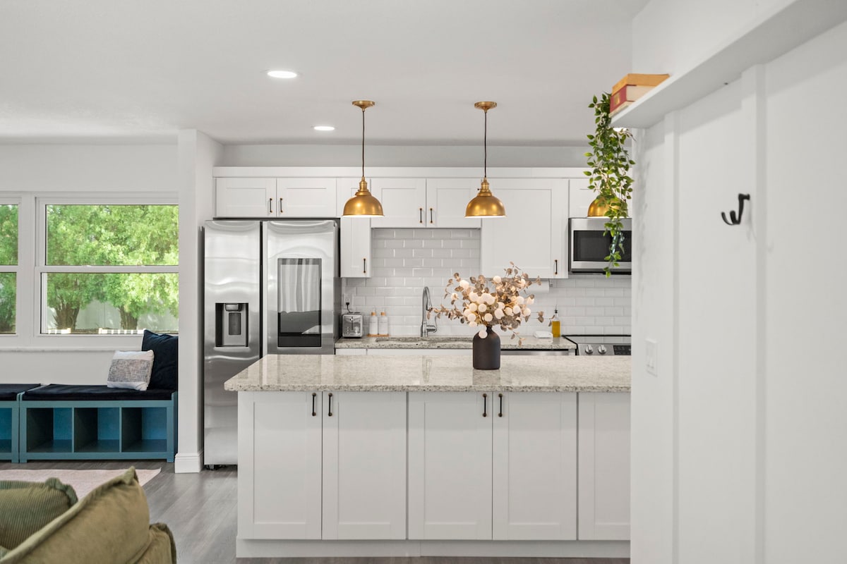 ಡೌನ್ಟೌನ್ ಡ್ಯುನೆಡಿನ್ ಫ್ಲೋರಿಡಾದಲ್ಲಿ 2 ಬೆಡ್ರೂಮ್ಗಳು, 1 ಸ್ನಾನಗೃಹ ಹೊಂದಿರುವ ಮುದ್ದಾದ ವಿಲಕ್ಷಣ ಮನೆ. ಮನೆಯಲ್ಲಿರುವ ಎಲ್ಲಾ ಪೀಠೋಪಕರಣಗಳು ಹೊಸದಾಗಿವೆ. ಬಾತ್ರೂಮ್ ಅನ್ನು ಹೊಸದಾಗಿ ನವೀಕರಿಸಲಾಗಿದೆ ಮತ್ತು ಜೆಟ್ ಟಬ್ ಹೊಂದಿರುವ ಶವರ್ ಅನ್ನು ಒಳಗೊಂಡಿದೆ. 60" ಫ್ಲಾಟ್ ಸ್ಕ್ರೀನ್ ಸ್ಮಾರ್ಟ್ ಟಿವಿ ಮತ್ತು ಸ್ಲೀಪರ್ ಸೋಫಾ ಹೊಂದಿರುವ ಆರಾಮದಾಯಕ ಕುಟುಂಬ ರೂಮ್. ನಾವು ಡೆಸ್ಕ್ ಮತ್ತು ಅಂಡಾಕಾರದ ಯಂತ್ರವನ್ನು ಹೊಂದಿದ್ದೇವೆ, ಜೊತೆಗೆ ಹಿಂಭಾಗದಲ್ಲಿರುವ ಹೆಚ್ಚುವರಿ ರೂಮ್ನಲ್ಲಿ ಓದಲು/ವಿಶ್ರಾಂತಿ ಪಡೆಯಲು ಆರಾಮದಾಯಕ ಕುರ್ಚಿಯನ್ನು ಹೊಂದಿದ್ದೇವೆ. ಅಡುಗೆಮನೆಯು ಸಂಪೂರ್ಣವಾಗಿ ಕ್ರಿಯಾತ್ಮಕವಾಗಿದೆ, ಮನೆಯ ಹೆಚ್ಚಿನ ಅನುಕೂಲಗಳನ್ನು ಹೊಂದಿದೆ. ಬನ್ನಿ ಮತ್ತು ಆಹ್ಲಾದಕರವಾದ ಡುನೆಡಿನ್ ಅನ್ನು ಆನಂದಿಸಿ ಮತ್ತು ನಿಮ್ಮ ಜೀವನದ ಸಮಯವನ್ನು ಆನಂದಿಸಿ!