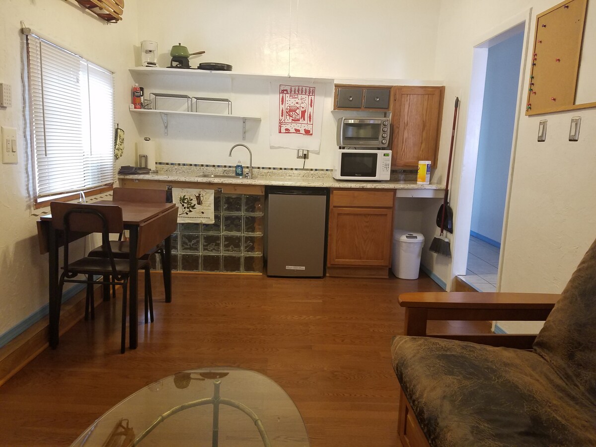 ಮಲಗುವ ಪ್ರದೇಶ, ಸಣ್ಣ ಅಡುಗೆಮನೆ, ಕುಳಿತುಕೊಳ್ಳುವ ಪ್ರದೇಶ ಮತ್ತು ಬಾತ್ರೂಮ್ ಅನ್ನು ಒಳಗೊಂಡಿರುವ ತೆರೆದ ಪರಿಕಲ್ಪನೆಯ ನೆಲದ ಯೋಜನೆಯೊಂದಿಗೆ ಕಲೆ ತುಂಬಿದ ಕ್ಯಾಸಿತಾ. ಖಾಸಗಿ ಪ್ರವೇಶದ್ವಾರ, ಟೇಬಲ್ ಮತ್ತು ಕುರ್ಚಿಗಳು, ಬರ್ಡ್ ಫೀಡರ್ಗಳು ಮತ್ತು ಹ್ಯಾಮಾಕ್ ಹೊಂದಿರುವ ಬೇಲಿ ಹಾಕಿದ ಅಂಗಳ, 2 ಸಣ್ಣ ಕಾರುಗಳಿಗೆ ಆಫ್ ಸ್ಟ್ರೀಟ್ ಪಾರ್ಕಿಂಗ್. ಉತ್ತಮ ವೈಫೈ ಮತ್ತು ಪ್ರಕೃತಿಗೆ ಸುಲಭ ಪ್ರವೇಶದೊಂದಿಗೆ ಕ್ಯಾಸಿಟಾ ಆರಾಮದಾಯಕ ಆಶ್ರಯವಾಗಿದೆ. ಈ ಲಿಸ್ಟಿಂಗ್ನಲ್ಲಿ ಬೇರೆಡೆ ಏನು ಹೇಳಬಹುದು ಎಂಬುದನ್ನು ಲೆಕ್ಕಿಸದೆ ನಾನು ಸಾಕುಪ್ರಾಣಿಗಳನ್ನು ಸ್ವೀಕರಿಸುತ್ತೇನೆ. ನಿರ್ಗಮನದ ಸಮಯದಲ್ಲಿ ರೂಪದಲ್ಲಿ ಬಿಡಲು ಪ್ರತಿ ರಾತ್ರಿಗೆ ಪ್ರತಿ ಸಾಕುಪ್ರಾಣಿ ಶುಲ್ಕಕ್ಕೆ $ 12 ಇದೆ.