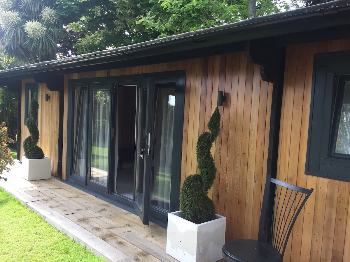 ಗೇಟ್ ಇರುವ ನಿವಾಸದೊಳಗೆ ಖಾಸಗಿ ಪಾರ್ಕಿಂಗ್ ಹೊಂದಿರುವ ಗಾರ್ಡನ್ ಕ್ಯಾಬಿನ್ ಅನ್ನು ಸ್ವತಃ ಒಳಗೊಂಡಿದೆ. ಸೆಂಟ್ರಲ್ ಹೀಟಿಂಗ್, ಎನ್-ಸೂಟ್ ಬಾತ್ರೂಮ್, ಕೆಟಲ್ ಹೊಂದಿರುವ ಅಡಿಗೆಮನೆ, ಟೋಸ್ಟರ್, ಪಾನೀಯಗಳ ಫ್ರಿಜ್, ಐರನ್ ಮತ್ತು ಐರನಿಂಗ್ ಬೋರ್ಡ್ನೊಂದಿಗೆ ಸಂಪೂರ್ಣವಾಗಿ ಅಳವಡಿಸಲಾಗಿದೆ. 4 ಜನರಿಗೆ ಸುಲಭವಾಗಿ ಅವಕಾಶ ಕಲ್ಪಿಸಲು ಡಬಲ್ ಬೆಡ್ರೂಮ್ ಜೊತೆಗೆ ಡಬಲ್ ಸೋಫಾ ಹಾಸಿಗೆ. ಹಾಸಿಗೆ ಮತ್ತು ಟವೆಲ್ಗಳನ್ನು ಸರಬರಾಜು ಮಾಡಲಾಗಿದೆ. ಟ್ರಾವೆಲ್ ಕೋಟ್ ಲಭ್ಯವಿದೆ. ಮಕ್ಕಳು ಮತ್ತು ಸಾಕುಪ್ರಾಣಿಗಳಿಗೆ ಸುರಕ್ಷಿತವಾದ ಸೈಡ್ ಗೇಟ್ ಮತ್ತು ಉದ್ಯಾನದ ಮೂಲಕ ಪ್ರತ್ಯೇಕ ಪ್ರವೇಶದ್ವಾರ ವಾರಾಂತ್ಯದ ರಿಟ್ರೀಟ್ಗೆ ಸೂಕ್ತವಾಗಿದೆ ಮತ್ತು ಕಡಲತೀರಗಳಿಗೆ ಬಹಳ ಹತ್ತಿರದಲ್ಲಿದೆ ಸಾಕುಪ್ರಾಣಿಗಳನ್ನು ಸ್ವಾಗತಿಸಲಾಗುತ್ತದೆ