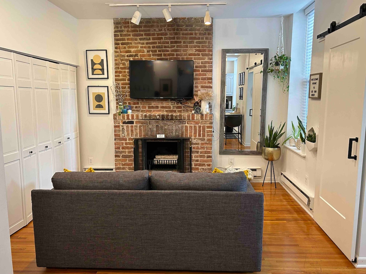 NYC ಮತ್ತು ವಿಮಾನ ನಿಲ್ದಾಣಗಳಿಗೆ ಸಾರ್ವಜನಿಕ ಸಾರಿಗೆಗೆ ಅಜೇಯ ಸಾಮೀಪ್ಯ ಹೊಂದಿರುವ ಡೌನ್ಟೌನ್ ಹೊಬೋಕೆನ್ ಕಾಂಡೋ ನಗರ ಚಿಕ್ 1 ನೇ ಮಹಡಿ(ಕಟ್ಟಡಕ್ಕೆ ಪ್ರವೇಶಿಸಲು ಮೆಟ್ಟಿಲುಗಳು ಮಾತ್ರ). NYC ಗೆ ಸುರಂಗಮಾರ್ಗಗಳಿಗೆ ಕೇವಲ 5 ನಿಮಿಷಗಳ ನಡಿಗೆ (15 ನಿಮಿಷಗಳ ಪ್ರಯಾಣ ಹೊಬೋಕೆನ್- >ಮ್ಯಾನ್ಹ್ಯಾಟನ್). ಈ ಘಟಕವು ಲಿವಿಂಗ್ ರೂಮ್ ಮತ್ತು ಮಲಗುವ ಕೋಣೆಯಲ್ಲಿ ಮೌಂಟೆಡ್ ಟಿವಿ, ಉತ್ತಮ ನೈಸರ್ಗಿಕ ಬೆಳಕು, ಸಂಪೂರ್ಣವಾಗಿ ಸಂಗ್ರಹವಾಗಿರುವ ಅಡುಗೆಮನೆ ಮತ್ತು ನವೀಕರಿಸಿದ ಬಾತ್ರೂಮ್ ಅನ್ನು ಹೊಂದಿದೆ. ಹೊಬೋಕೆನ್ ನೀಡುವ ಎಲ್ಲವನ್ನೂ ಅನುಭವಿಸಲು ಮನೆಗೆ ಬರುವ ಮೊದಲು NYC ಯ ಹಸ್ಲ್ ಮತ್ತು ಗದ್ದಲವನ್ನು ಆನಂದಿಸಿ!