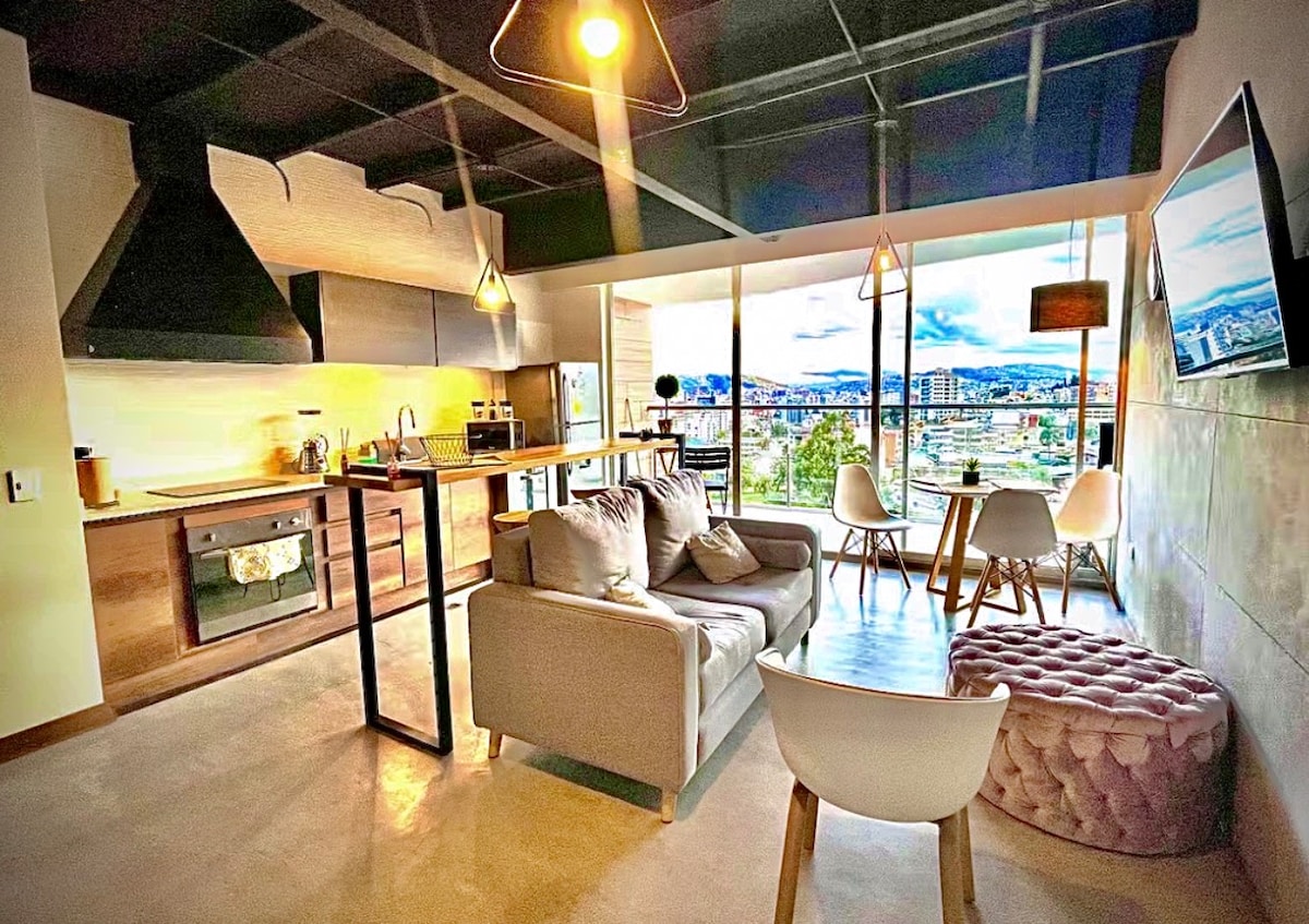ಕ್ವಿಟೊದ ಪ್ರತಿಷ್ಠಿತ ಪ್ರದೇಶದಲ್ಲಿ ಇರುವ ಐಷಾರಾಮಿ ಮತ್ತು ಸಮಕಾಲೀನ ಕಾರ್ಯನಿರ್ವಾಹಕ ಅಪಾರ್ಟ್ಮೆಂಟ್ (ಅವ. ರಿಪಬ್ಲಿಕಾ ಡೆಲ್ ಸಾಲ್ವಡಾರ್), ಹಣಕಾಸು ಕೇಂದ್ರಬಿಂದುವೆಂದು ಗುರುತಿಸಲಾಗಿದೆ. ಈ ಸ್ಥಳವು ಸಂಪೂರ್ಣ ಮತ್ತು ಆರಾಮದಾಯಕ ಸಹೋದ್ಯೋಗಿ ಪ್ರದೇಶ, ಬಾರ್ಬೆಕ್ಯೂ, ಸಾಮಾಜಿಕ ಪ್ರದೇಶಗಳು, ಲಾಂಡ್ರಿ ಸೇವೆ ಮತ್ತು ಸೂರ್ಯಾಸ್ತಗಳೊಂದಿಗೆ ಉಸಿರುಕಟ್ಟಿಸುವ ನೋಟವನ್ನು ಹೊಂದಿದೆ, ಅದು ನಿಮ್ಮನ್ನು ಸಂಪರ್ಕ ಕಡಿತಗೊಳಿಸಲು ಮತ್ತು ವಿಶ್ರಾಂತಿ ಪಡೆಯಲು ಆಹ್ವಾನಿಸುತ್ತದೆ. ಕಟ್ಟಡದ ಒಳಗೆ ಪಾರ್ಕಿಂಗ್ ಸ್ಥಳವಿಲ್ಲ. ಹತ್ತಿರದಲ್ಲಿ ನೀಲಿ ಪ್ರದೇಶ ಪ್ರದೇಶಗಳು (ಸಾರ್ವಜನಿಕ ಉದ್ಯಾನವನ) ಅಥವಾ ಖಾಸಗಿ ಪಾರ್ಕಿಂಗ್ ಸ್ಥಳಗಳಿವೆ.