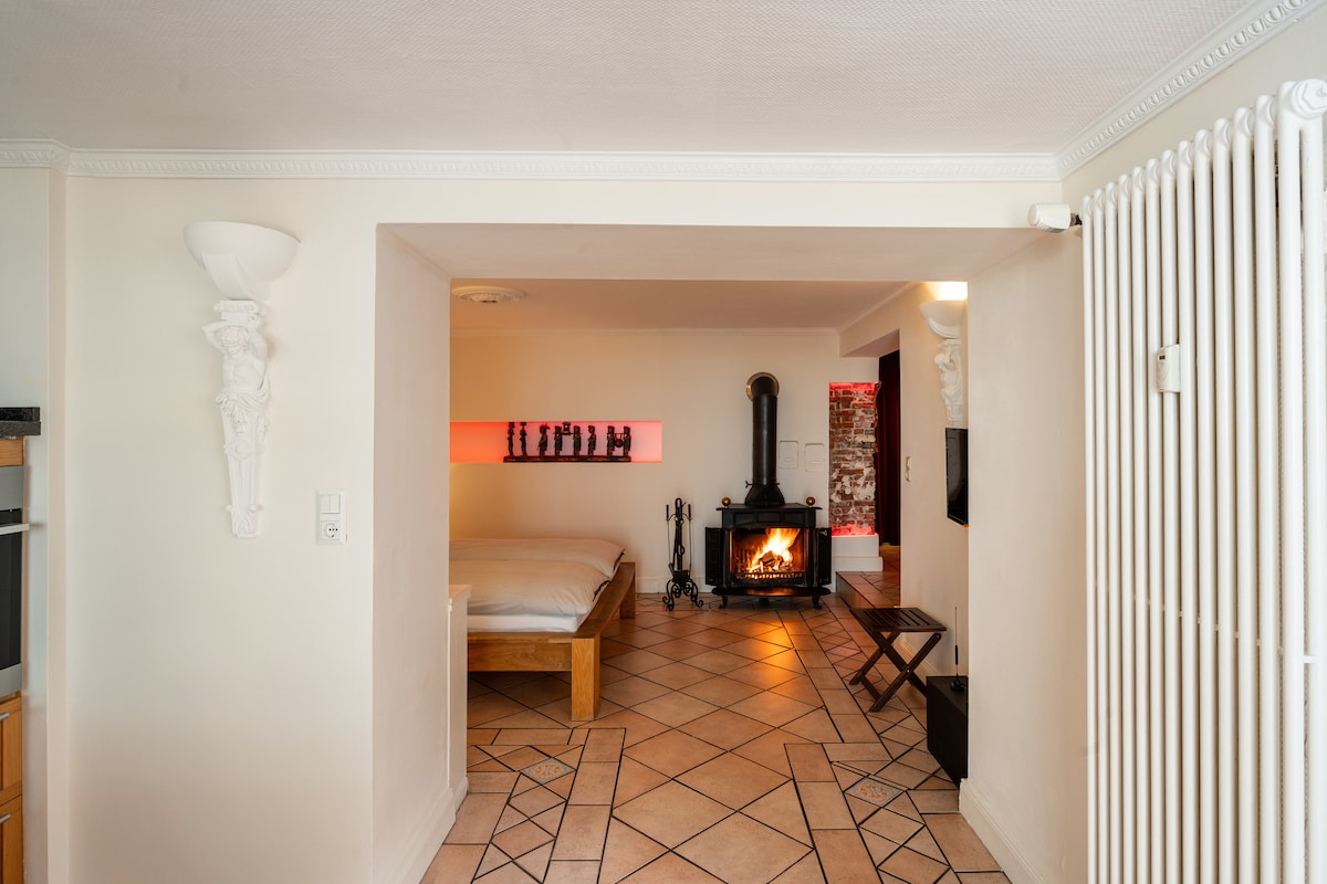 ಹಿಂದಿನ ರಿಡ್ಡಾಗ್ಶೌಸೆನ್ ಫೋರ್ಸ್ಟೇರಿಯ ಹಳೆಯ ಗೋಡೆಗಳಲ್ಲಿ ಐಷಾರಾಮಿ ಅಪಾರ್ಟ್ಮೆಂಟ್ಗಳು: ಸಂಜೆ, "ಸಿಟಿ ಕಂಟ್ರಿ ಬಾರ್ನ್" ನ ಉದ್ಯಾನವನದಂತಹ ಉದ್ಯಾನವನದ ಮೇಲಿರುವ ವಿಶಾಲವಾದ ಕಿಟಕಿ ಸಿಲ್ಗಳಲ್ಲಿ ಒಂದರಲ್ಲಿ ಕುರಿ ಚರ್ಮದ ಮೇಲೆ ಆರಾಮವಾಗಿ ಕುಳಿತುಕೊಳ್ಳಿ. ಗ್ಯಾಸ್ ಫೈರ್ಪ್ಲೇಸ್ನ ಮಿನುಗುವ ಬೆಳಕನ್ನು ಆನಂದಿಸಿ ಅಥವಾ ಅಡುಗೆ ದ್ವೀಪದಲ್ಲಿ ಸ್ನೇಹಿತರೊಂದಿಗೆ ಅಡುಗೆ ಮಾಡಿ. ರೂಮ್ ಎತ್ತರ ಮತ್ತು ಆಕರ್ಷಕ ಛಾವಣಿಯ ಟ್ರಸ್ನಿಂದ ವಾಸ್ತುಶಿಲ್ಪೀಯವಾಗಿ ಮಂತ್ರಮುಗ್ಧರಾಗಿರಿ. ಜಪಾನಿನ ಶವರ್ ಶೌಚಾಲಯ. ಮೋಡಗಳಂತೆ ಮಲಗಲು ತೆಂಪುರ್ ಹಾಸಿಗೆಗಳು ಮತ್ತು ದಿಂಬಿನ ಬಫೆಟ್.