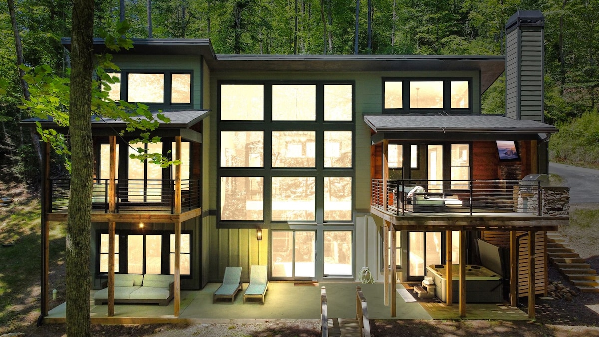 ಈ ಶಾಂತಿಯುತ ಮತ್ತು ಖಾಸಗಿ ಆಧುನಿಕ ಸ್ಥಳದಲ್ಲಿ ಆರಾಮವಾಗಿರಿ. ನಗರದಿಂದ ತ್ವರಿತ ಡ್ರೈವ್ ಮತ್ತು ನೀವು ಹಸ್ಲ್ ಮತ್ತು ಗದ್ದಲದಿಂದ ಈ ಎಸ್ಕೇಪ್ಗೆ ಆಗಮಿಸಿದ್ದೀರಿ. ಆದರೂ ಉತ್ತಮ ರೆಸ್ಟೋರೆಂಟ್ಗಳು, ಟ್ರೆಂಡಿ ಬಾರ್ಗಳು/ಬ್ರೂವರಿಗಳು ಮತ್ತು ಅನನ್ಯ ಸಣ್ಣ ಪಟ್ಟಣ ಶಾಪಿಂಗ್ಗಾಗಿ ಮನಸ್ಥಿತಿ ಮುಟ್ಟಿದಾಗ ನೀವು ಡೌನ್ಟೌನ್ ಬ್ಲೂ ರಿಡ್ಜ್ನಿಂದ ಕೆಲವೇ ನಿಮಿಷಗಳ ದೂರದಲ್ಲಿದ್ದೀರಿ. ಸಂಪೂರ್ಣವಾಗಿ ನವೀಕರಿಸಿದ ಈ ಕ್ಯಾಬಿನ್ನಲ್ಲಿ ನೀವು ಒಳಾಂಗಣ ಹಾಟ್ ಟಬ್ನಲ್ಲಿ ಸಂಪೂರ್ಣ ಗೌಪ್ಯತೆಯನ್ನು ಅನುಭವಿಸುತ್ತೀರಿ, ಸ್ವಿಂಗ್ ಬೆಡ್ ಮತ್ತು ಟಿವಿ, ಬೃಹತ್ ವಾಕ್-ಇನ್ ಶವರ್, ಪ್ರಶಾಂತ ಫೈರ್ಪಿಟ್, ಹೊಸ ಗ್ರಿಲ್ ಮತ್ತು ಫೈರ್ಪಿಟ್ ಟೇಬಲ್ನೊಂದಿಗೆ ಮುಖಮಂಟಪದಲ್ಲಿ ಪ್ರದರ್ಶಿಸಲಾಗುತ್ತದೆ.