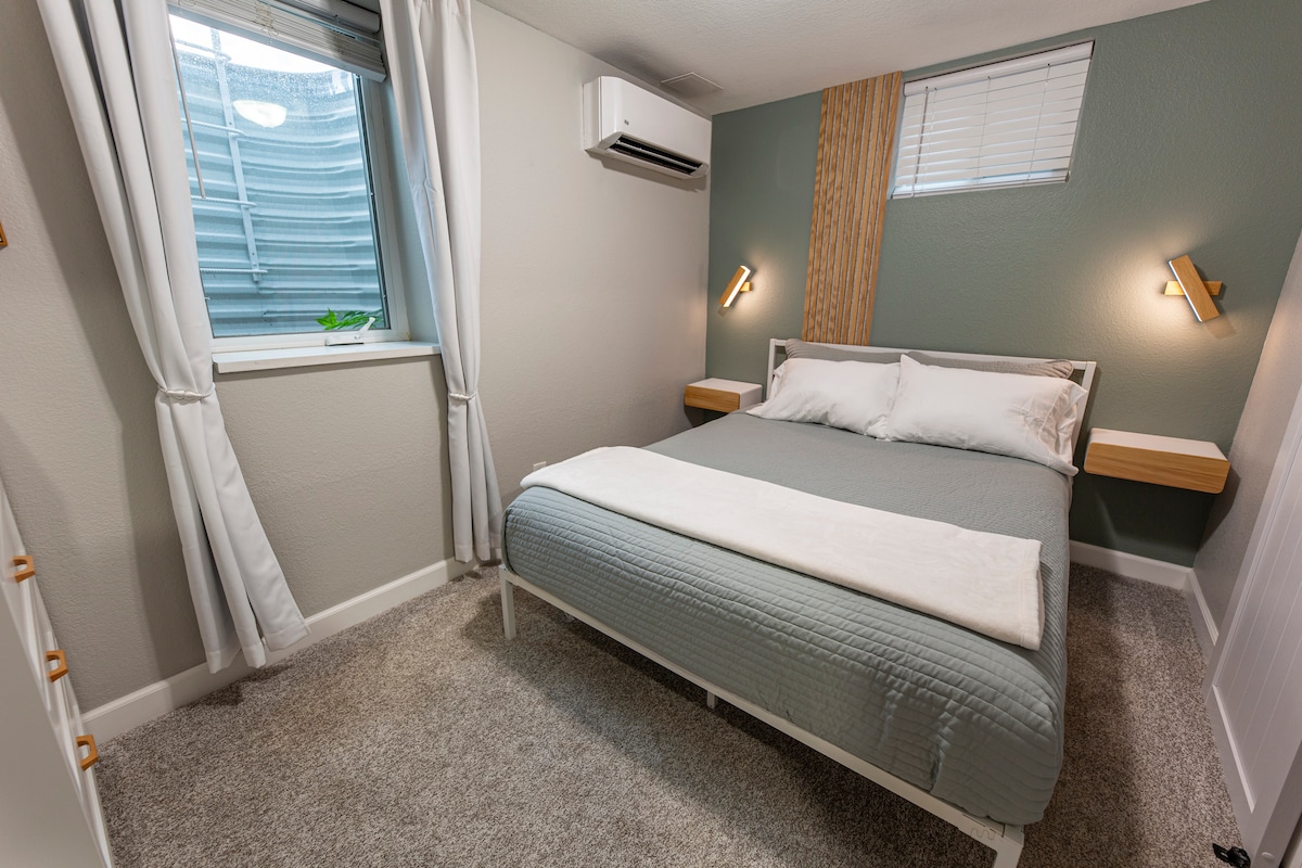 ಈ ಸ್ವಯಂ-ಒಳಗೊಂಡಿರುವ ವಿಹಾರದಲ್ಲಿ ಆರಾಮವಾಗಿರಿ. ಮನೆಯ ಬದಿಯಲ್ಲಿ ಪ್ರವೇಶದ್ವಾರ, ಸಂಯೋಜನೆಯ ಲಾಕ್ (ಇದು 60 ಸೆಕೆಂಡುಗಳ ನಂತರ ಸ್ವತಃ ಲಾಕ್ ಆಗುತ್ತದೆ). ಒಬ್ಬರಿಗೆ ಸೂಕ್ತವಾಗಿದೆ, ಅವರು ಅವಳಿ ಹಾಸಿಗೆಯನ್ನು ಹಂಚಿಕೊಂಡರೆ ಎರಡು ಸುಗಮವಾಗಿ ಹೊಂದಿಕೊಳ್ಳಬಹುದು. ಕಡಿಮೆ (6’ 2")ಸೀಲಿಂಗ್ಗಳು. ಕಡಿಮೆ ಶವರ್. ಪಂಪ್ ಚಾಲನೆಯಲ್ಲಿರುವಾಗ ಕೊಳಾಯಿ ಉರುಳುತ್ತದೆ. ಹೊರಾಂಗಣ ಪ್ರದೇಶಗಳು ಮಾತ್ರ ಹಂಚಿಕೊಳ್ಳುವ ಪ್ರದೇಶಗಳಾಗಿವೆ. ಕೆಲವೊಮ್ಮೆ ಕುಟುಂಬ ಸದಸ್ಯರು ಪಕ್ಕದ ಬಾಗಿಲಿಗೆ ಹೋಗಬಹುದು. ಘಟಕವು ಸಾಕುಪ್ರಾಣಿ ಸ್ನೇಹಿಯಾಗಿದೆ, ನಿಮ್ಮ ಪ್ರಾಣಿಯನ್ನು ನೀವು ತರಬಹುದು. ನೀವು ಸಾಕುಪ್ರಾಣಿಗಳಿಗೆ ಅಲರ್ಜಿ ಹೊಂದಿದ್ದರೆ/5’10 ಕ್ಕಿಂತ ಹೆಚ್ಚು ವಯಸ್ಸಿನವರಾಗಿದ್ದರೆ "ಘಟಕವು ಸೂಕ್ತವಾಗಿರುವುದಿಲ್ಲ.