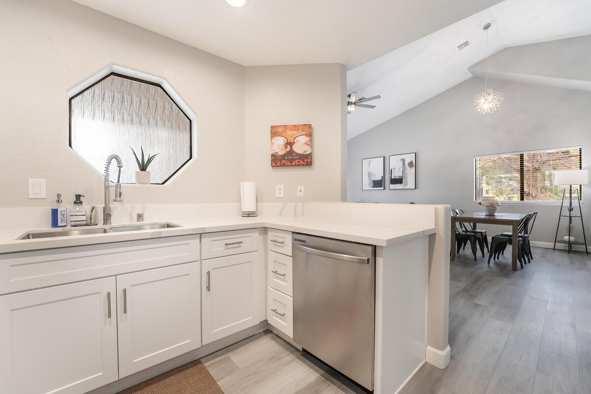 ಕಿಂಗ್ ಮತ್ತು ಕ್ವೀನ್ ಬೆಡ್ನಲ್ಲಿ ಹೈ-ವಾಲ್ಟೆಡ್ ಸೀಲಿಂಗ್ಗಳು, 65 ಇಂಚಿನ ಟಿವಿ, ಸ್ಪಾ ತರಹದ ಸ್ನಾನಗೃಹ ಮತ್ತು ಪ್ರೀಮಿಯಂ ಹಾಸಿಗೆಗಳನ್ನು ಒಳಗೊಂಡಿರುವ ನಮ್ಮ ಸೊಗಸಾದ 2-ಬೆಡ್ ರಿಟ್ರೀಟ್ನಲ್ಲಿ ವಿಶ್ರಾಂತಿ ಪಡೆಯಿರಿ. ಘಟಕದ ಮುಂದೆ ಎರಡು ಹೊರಾಂಗಣ ಪ್ಯಾಟಿಯೋಗಳು ಮತ್ತು ಅನುಕೂಲಕರ ಪಾರ್ಕಿಂಗ್ ಅನ್ನು ಆನಂದಿಸಿ. ಗೇಟೆಡ್ ಸೆಟ್ಟಿಂಗ್ನಲ್ಲಿ ಹೊರಾಂಗಣ ಪೂಲ್, ಹಾಟ್ ಟಬ್, ಜಿಮ್ ಮತ್ತು ಟೆನ್ನಿಸ್ ಕೋರ್ಟ್ಗಳಿಗೆ ಪ್ರವೇಶ. ಆದರ್ಶ ಸ್ಥಳವು ನಿಮ್ಮನ್ನು ರೆಸ್ಟೋರೆಂಟ್ಗಳು, ಶಾಪಿಂಗ್, ಹೈಕಿಂಗ್ ಟ್ರೇಲ್ಗಳು ಮತ್ತು ಸ್ಟ್ರಿಪ್ಗೆ ಹತ್ತಿರವಾಗಿಸುತ್ತದೆ. ಆಧುನಿಕ ಸೌಕರ್ಯಗಳು ಮತ್ತು ಆರಾಮದಾಯಕ ಸೊಬಗಿನ ಪರಿಪೂರ್ಣ ಮಿಶ್ರಣದಲ್ಲಿ ನೀವು ತಲ್ಲೀನರಾಗಿಬಿಡಿ. ಮರೆಯಲಾಗದ ವಾಸ್ತವ್ಯಕ್ಕಾಗಿ ಈಗಲೇ ಬುಕ್ ಮಾಡಿ!