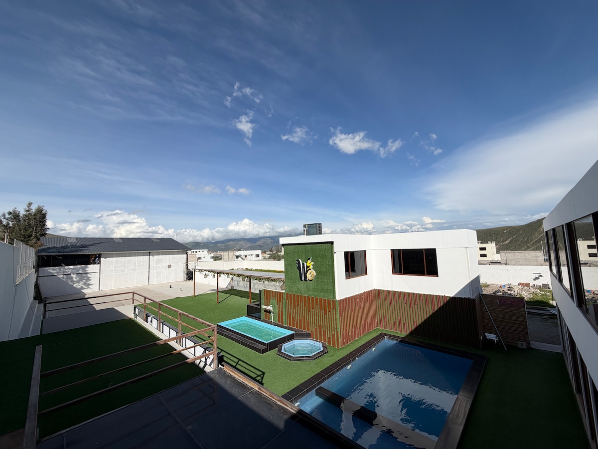 RESERVA YA¡ convive con la naturaleza al despertar con el canto de las aves, sal a montar bici, o simplemente relájate mientras disfrutas de tu café, fácil transporte. a 3 minutos de la mitad del mundo y 5 minutos del volcán Pululagua, disfruta de restaurantes, centros comerciales , museos, bancos, los mejores lugares turísticos a tu alcance ¡disfruta en grande, TE ESPERAMOS!!! RESERVA AHORA