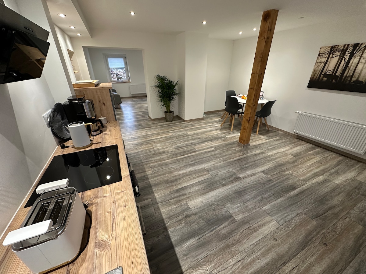 ನಮ್ಮ ಮನೆಯ ನೆಲಮಾಳಿಗೆಯಲ್ಲಿ ಈ ಗೆಸ್ಟ್ ಅಪಾರ್ಟ್ಮೆಂಟ್ ಇದೆ. ಅಪಾರ್ಟ್ಮೆಂಟ್ನಲ್ಲಿ ಆರಾಮದಾಯಕ ಬಾಕ್ಸ್ ಬೆಡ್ (200cm x 160cm), ಟೇಬಲ್ ಹೊಂದಿರುವ ಎರಡು ಲೌಂಜ್ ಕುರ್ಚಿಗಳು, ಓದುವ ದೀಪ, ಆಧುನಿಕ ಮತ್ತು ವ್ಯಾಪಕವಾಗಿ ಸುಸಜ್ಜಿತ ಅಡುಗೆಮನೆ, ಆಧುನಿಕ ಮತ್ತು ಆರಾಮದಾಯಕವಾದ ಸುಸಜ್ಜಿತ ಬಾತ್ರೂಮ್/WC ಯ ಜೆನ್ಜಿಗ್ನ ಪರಿಪೂರ್ಣ ನೋಟಕ್ಕಾಗಿ ಆರಾಮದಾಯಕ ಬಾರ್ ಕುರ್ಚಿಗಳನ್ನು ಹೊಂದಿರುವ ಆಧುನಿಕ ಬಾರ್ ಟೇಬಲ್ ಇದೆ . ಅಗತ್ಯವಿದ್ದರೆ, ನಿಮ್ಮ ಎಲೆಕ್ಟ್ರಿಕ್ ಕಾರನ್ನು ನಮ್ಮೊಂದಿಗೆ ಚಾರ್ಜ್ ಮಾಡಲು ಸಾಧ್ಯವಿದೆ. ನಿಮ್ಮ ಆಗಮನದ ಮೊದಲು ದಯವಿಟ್ಟು ಈ ನಿಟ್ಟಿನಲ್ಲಿ ನಮ್ಮನ್ನು ಸಂಪರ್ಕಿಸಿ!
