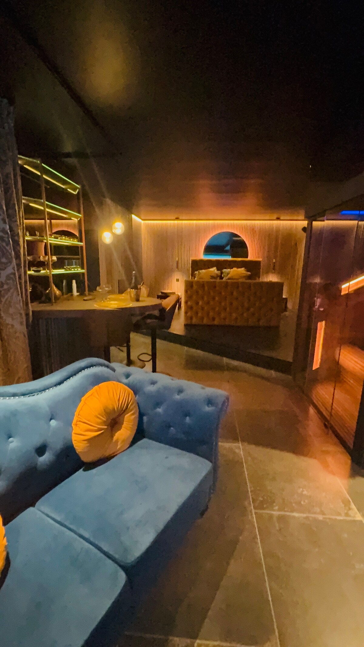 ಒಂದು ರಾತ್ರಿ ಅಥವಾ ವಿಸ್ತೃತ ವಾಸ್ತವ್ಯಕ್ಕಾಗಿ ಒಟ್ಟಿಗೆ ಭೇಟಿಯಾಗಲು ಮತ್ತು ವಿಶ್ರಾಂತಿ ಪಡೆಯಲು ಸೌಂಡ್ಪ್ರೂಫ್ ಮಾಡಿದ 50m² ವೆಲ್ನೆಸ್ ಸೂಟ್ ಅನ್ನು ಒದಗಿಸಲಾಗಿದೆ. ಸೂಟ್ 6 ಆಸನಗಳೊಂದಿಗೆ ಹೈ-ಎಂಡ್ ಸ್ಪಾ ಮತ್ತು ಅನಿಯಮಿತ ಪ್ರವೇಶದೊಂದಿಗೆ ಇನ್ಫ್ರಾರೆಡ್ ಸೌನಾವನ್ನು ಹೊಂದಿದೆ. ಆದ್ದರಿಂದ ಸೂಟ್ ನಿಜವಾದ ಸ್ಪಾ (ಹಾಟ್ ಟಬ್) ಅನ್ನು ಹೊಂದಿದೆ ಮತ್ತು ಸರಳ ಬಾಲ್ನಿಯೊ ಬಾತ್ಟಬ್ ಅಲ್ಲ. ಕಾಟೇಜ್ನಲ್ಲಿ ಅಂತರ್ನಿರ್ಮಿತ ಸೌಂಡ್ ಸಿಸ್ಟಮ್ನ ಗುಣಮಟ್ಟದಿಂದ ನೀವು ಆಶ್ಚರ್ಯಚಕಿತರಾಗಲಿ. ಉಚಿತ ವೈಫೈ