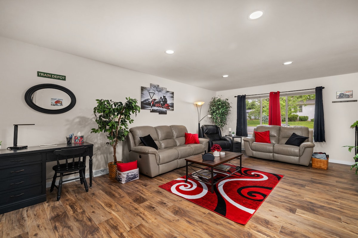 ಪೆಸಿಫಿಕ್, MO ನ ಹೃದಯಭಾಗದಲ್ಲಿರುವ ಕೇಂದ್ರೀಯವಾಗಿ ಸಂಪೂರ್ಣವಾಗಿ ನವೀಕರಿಸಿದ ಮನೆ. ಡೌನ್ಟೌನ್ ಪೆಸಿಫಿಕ್ಗೆ ಒಂದು ಸಣ್ಣ ನಡಿಗೆ, ಅಲ್ಲಿ ನೀವು ಲೈವ್ ಸಂಗೀತ, ಬಾರ್ಗಳು ಮತ್ತು ತಿನಿಸುಗಳನ್ನು ಕಾಣುತ್ತೀರಿ. ಮನೆಯು ವೇಗದ ವೈಫೈ, ಸ್ಮಾರ್ಟ್ ಟಿವಿಗಳು, ವಾಷರ್/ಡ್ರೈಯರ್, ಸೂಪರ್ ಆರಾಮದಾಯಕ ಹಾಸಿಗೆಗಳು ಮತ್ತು ಲಿನೆನ್ಗಳು, ಚಾರ್ಜಿಂಗ್ ಸಾಧನಗಳಿಗಾಗಿ ಅನೇಕ ಯುಎಸ್ಬಿ ಪೋರ್ಟ್ಗಳು, BBQ ಗ್ರಿಲ್, ಫೈರ್ ಪಿಟ್ ಮತ್ತು ಸಂಪೂರ್ಣವಾಗಿ ಸಂಗ್ರಹವಾಗಿರುವ ಅಡುಗೆಮನೆ, ಕಾಫಿ ಮತ್ತು ಟೀ ಸ್ಟೇಷನ್ ಅನ್ನು ಹೊಂದಿದೆ. - ಆರು ಧ್ವಜಗಳಿಗೆ 10 ನಿಮಿಷಗಳ ಡ್ರೈವ್ - ಜೆಲ್ಲಿಸ್ಟೋನ್ ಪಾರ್ಕ್ಗೆ 10 ನಿಮಿಷಗಳ ಡ್ರೈವ್ - ಪುರಿನಾ ಫಾರ್ಮ್ಗಳಿಗೆ 10 ನಿಮಿಷಗಳ ಡ್ರೈವ್ - ಹಿಡನ್ ವ್ಯಾಲಿ ಸ್ಕೀ ರೆಸಾರ್ಟ್ಗೆ 15 ನಿಮಿಷಗಳ ಡ್ರೈವ್