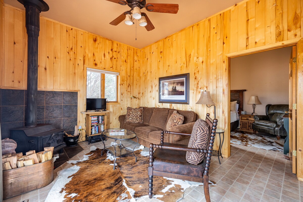 9,300 ಎತ್ತರದಲ್ಲಿ, ಸಾಂಗ್ರೆ ಡಿ ಕ್ರಿಸ್ಟೋ ಪರ್ವತಗಳ ವಿಶಾಲವಾದ, ದವಡೆ ಬೀಳುವ ನೋಟವನ್ನು ಆನಂದಿಸಿ. ಪೈನ್ಗಳ ಮೂಲಕ ಗಾಳಿ ಬೀಸುತ್ತದೆ ಮತ್ತು ವನ್ಯಜೀವಿಗಳು ಹೇರಳವಾಗಿವೆ. ಯಾವುದೇ ಸೊಳ್ಳೆಗಳಿಲ್ಲ, ಕೇವಲ ಹಮ್ಮಿಂಗ್ಬರ್ಡ್ಗಳು! ನಾವು ಗಮನಾರ್ಹ ದೂರದಲ್ಲಿ ಮೋಜಿನ ಸ್ಥಳಗಳ ಬಗ್ಗೆ ಸಾಕಷ್ಟು ಮಾಹಿತಿಯನ್ನು ಒದಗಿಸುತ್ತೇವೆ. ಸಂಪೂರ್ಣವಾಗಿ ಸಜ್ಜುಗೊಳಿಸಲಾದ ಕ್ಯಾಬಿನ್ನಲ್ಲಿ ಓಲ್ಡ್ ವೆಸ್ಟ್ ಮ್ಯೂಸಿಕ್ ಮತ್ತು ರೇಡಿಯೋ ಶೋ ಆಲ್ಬಂಗಳು ಮತ್ತು ಆಟಗಳು, ಒಗಟುಗಳು ಮತ್ತು ಪುಸ್ತಕಗಳಿವೆ - ಹೆಚ್ಚಿನ ಅಲಂಕಾರದಂತಹ ಪಾಶ್ಚಾತ್ಯ ಥೀಮ್ ಹೊಂದಿರುವ ಅನೇಕವು. ಒಳಾಂಗಣವು ಸ್ವತಃ ಒಂದು ಅನುಭವವಾಗಿದೆ. ತಡಿ! ನಿಮ್ಮ ಮುಂದಿನ ಅದ್ಭುತ ನೆನಪುಗಳು ಇಲ್ಲಿ ನಿಮಗಾಗಿ ಕಾಯುತ್ತಿವೆ.