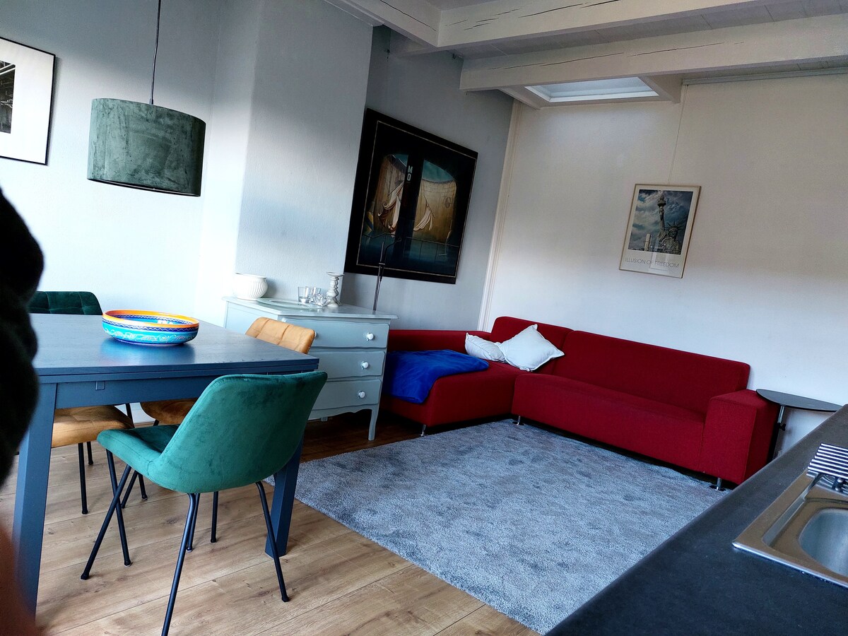 ನನ್ನ ಅಪಾರ್ಟ್ಮೆಂಟ್ ಒಮ್ಮೆ ಹಳೆಯ ಟೌನ್ ಹಾಲ್ ಒತ್ತಡವನ್ನು ಹೊಂದಿದ್ದ ಐತಿಹಾಸಿಕ ಕಟ್ಟಡದಲ್ಲಿದೆ. ಇದು 130 m² ಎತ್ತರದ ಛಾವಣಿಗಳು, ಉದ್ಯಾನ/ಟೆರೇಸ್ ಮತ್ತು ಐಷಾರಾಮಿ ಅಡುಗೆಮನೆಗೆ ಪ್ರವೇಶದೊಂದಿಗೆ ದೊಡ್ಡ ತೆರೆದ ಯೋಜನೆ ವಾಸಿಸುವ ಪ್ರದೇಶವನ್ನು ನೀಡುತ್ತದೆ - ಇವೆಲ್ಲವೂ ನೆಲ ಮಹಡಿಯಲ್ಲಿವೆ. ಅಪಾರ್ಟ್ಮೆಂಟ್ ಮೂಲಕ ಖಾಸಗಿ ಕಾರ್ ಪಾರ್ಕಿಂಗ್ ಸ್ಥಳವನ್ನು ತಲುಪಬಹುದು ಮತ್ತು ಟೆರೇಸ್ ಮೂಲಕ ಸುಲಭವಾಗಿ ಪ್ರವೇಶಿಸಬಹುದು. ಮೂಲಕ, Airbnb ಮೂಲಕ ಎಲ್ಲಾ ಆದಾಯವನ್ನು ಅಪಾರ್ಟ್ಮೆಂಟ್ ಅನ್ನು ಇನ್ನಷ್ಟು ಅಪ್ಗ್ರೇಡ್ ಮಾಡಲು ಮಾತ್ರ ಬಳಸಲಾಗುತ್ತದೆ! ನಿಮ್ಮ ವಿರಾಮವನ್ನು ಆನಂದಿಸಿ - ಶಾಂತ ಮತ್ತು ಕೇಂದ್ರ!