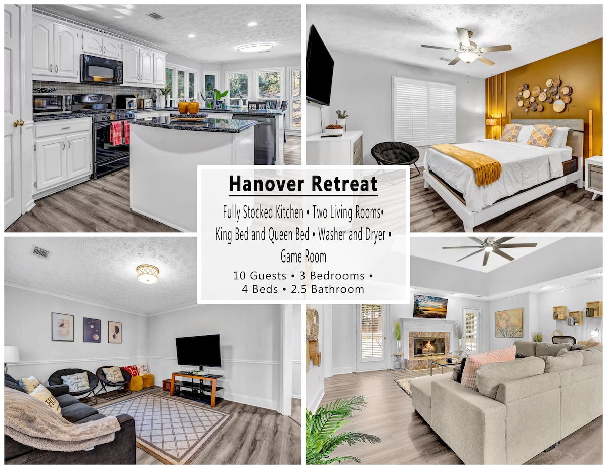 ಹ್ಯಾನೋವರ್ ರಿಟ್ರೀಟ್: 3BR w/ಗೇಮ್ ರೂಮ್ ಮಾಲ್ ಆಫ್ GA ಹತ್ತಿರ