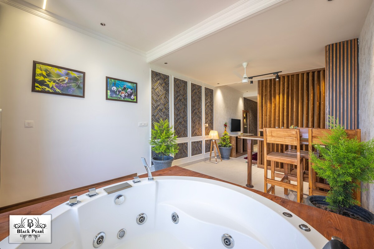 ಜಾಕುಝಿ ಹೊಂದಿರುವ ಬ್ಲ್ಯಾಕ್ಪರ್ಲ್ ಸೂಟ್ ರೂಮ್ | ಬಾಲ್ಕನಿ