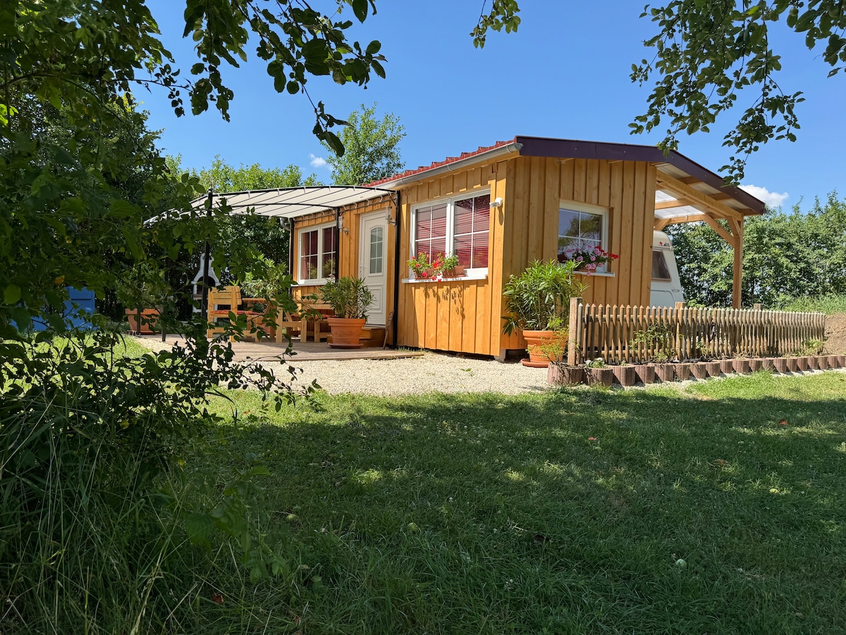 Sie suchen Ruhe und Stille mit Aussicht Wald und Natur aber auch mit kurzen Wegen zu Sehenswürdigkeiten wie Rothenburg o.T. Kurze Entfernungen zur Autobahn A7 5km / A6 9km ermöglichen eine bequeme Anfahrt und kurze Fahrtzeit nach Würzburg, Nürnberg, Ulm. Es erwartet ein Holzhaus mit neuen Betten und Matratzen direkt verbunden ist mit dem komfortablen Wohnwagen mit ausgestatteter Küche, Dusche, WC und einem weiteren Schlafzimmer und Essecke. Wir freuen uns auf sie. Bis bald