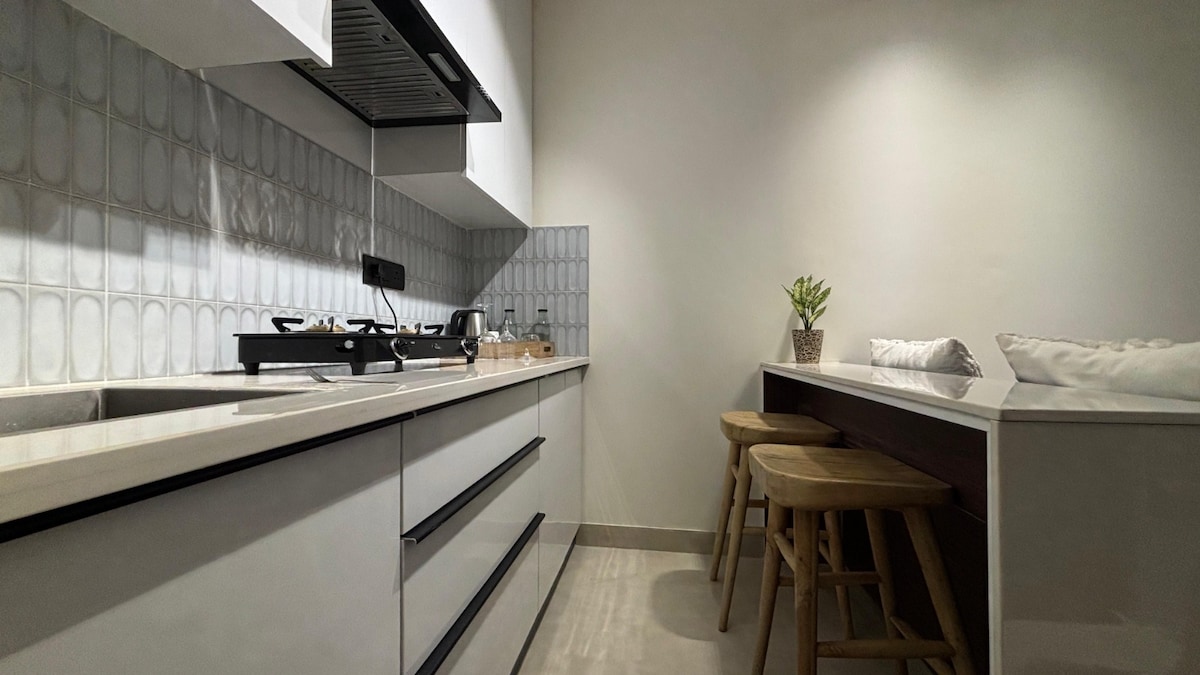ಕೆಲಸ ಮತ್ತು ವಿಶ್ರಾಂತಿಗಾಗಿ ವಿನ್ಯಾಸಗೊಳಿಸಲಾದ ಅಭಯಾರಣ್ಯದಲ್ಲಿ ಆರಾಮ ಮತ್ತು ಶೈಲಿಯನ್ನು ಅನುಭವಿಸಿ. ವೇಕ್ಫಿಟ್ ಮೂಳೆ ಹಾಸಿಗೆಯ ಮೇಲೆ ವಿಶ್ರಾಂತಿ ಪಡೆಯಿರಿ ಮತ್ತು ಬೆಚ್ಚಗಿನ ಸುತ್ತುವರಿದ ಬೆಳಕನ್ನು ಆನಂದಿಸಿ. ದಕ್ಷತಾಶಾಸ್ತ್ರದ ಕಾರ್ಯಕ್ಷೇತ್ರದೊಂದಿಗೆ ಉತ್ಪಾದಕರಾಗಿರಿ ಮತ್ತು ಎರಡು 42 ಇಂಚಿನ ಟಿವಿಗಳೊಂದಿಗೆ ವಿಶ್ರಾಂತಿ ಪಡೆಯಿರಿ. ಲಗತ್ತಿಸಲಾದ ಬಾತ್ರೂಮ್ ಪ್ರೀಮಿಯಂ ಶೌಚಾಲಯಗಳು ಮತ್ತು ಲಿಟ್ ವ್ಯಾನಿಟಿ ಮಿರರ್ ಅನ್ನು ನೀಡುತ್ತದೆ. ಸಂಪೂರ್ಣ ಸುಸಜ್ಜಿತ ಅಡುಗೆಮನೆಯಲ್ಲಿ ಸಲೀಸಾಗಿ ಅಡುಗೆ ಮಾಡಿ. ಶಾಂತಿ, ಉತ್ಪಾದಕತೆ ಮತ್ತು ಜೀವನಶೈಲಿ ಸಂಪೂರ್ಣವಾಗಿ ಬೆರೆಯುವ ಸ್ಥಳದಲ್ಲಿ ಸೋಫಾದ ಮೇಲೆ ವಿಶ್ರಾಂತಿ ಪಡೆಯಿರಿ.