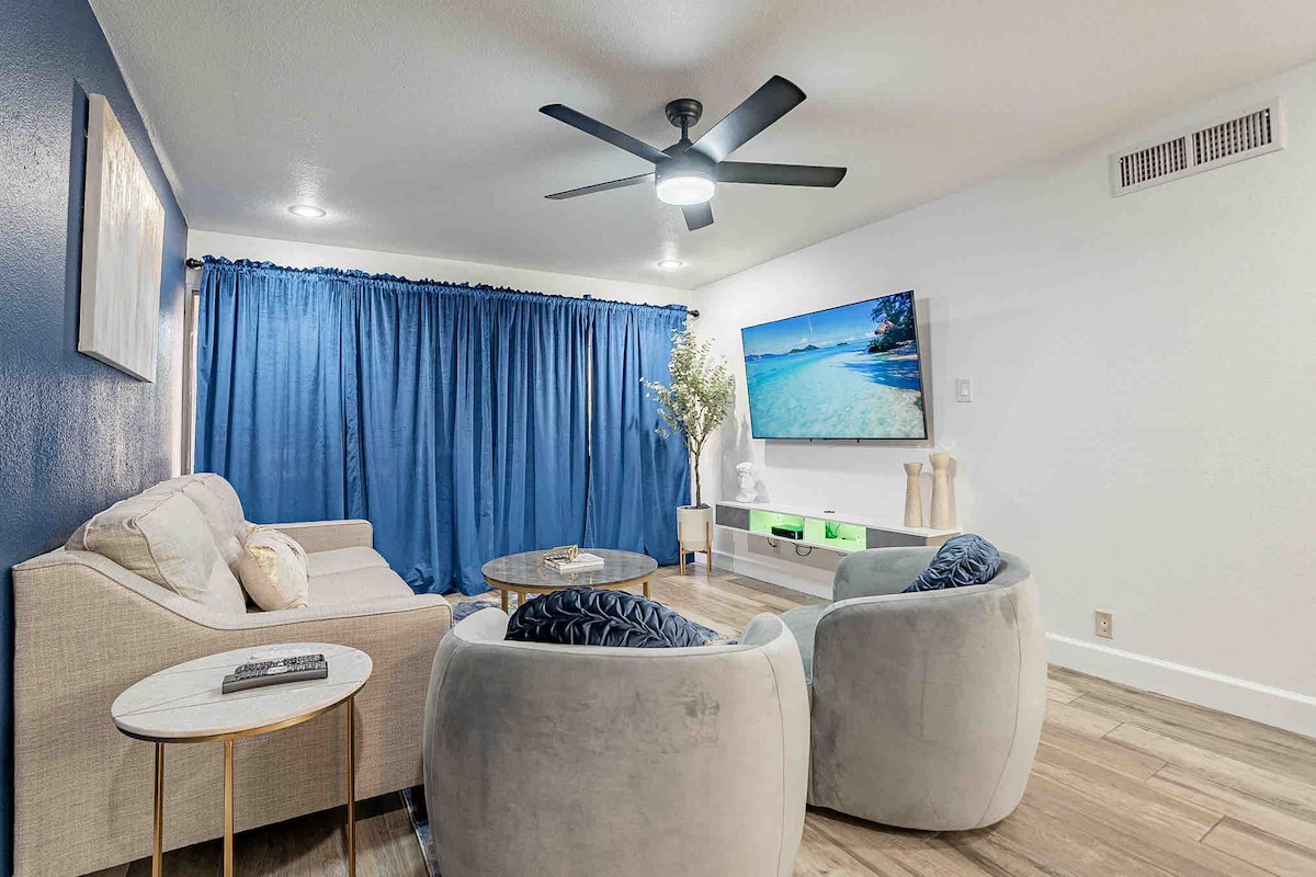 ಈ ನಿಷ್ಪಾಪವಾಗಿ ಸಜ್ಜುಗೊಳಿಸಲಾದ ಫ್ರೀ-ಸ್ಟ್ಯಾಂಡಿಂಗ್ ಮನೆಯು 4 ಬೆಡ್ರೂಮ್ಗಳು, 2 ಸ್ನಾನದ ಕೋಣೆಗಳು ಮತ್ತು 2,100 ಚದರ ಅಡಿಗಳನ್ನು ಹೊಂದಿದೆ. 3 ಕ್ವೀನ್ ಗಾತ್ರದ ಹಾಸಿಗೆಗಳು ಮತ್ತು ಅವಳಿ-ಓವರ್-ಫುಲ್ ಬಂಕ್ ಬೆಡ್ ಸೆಟ್ನೊಂದಿಗೆ, ಇದು ಕುಟುಂಬಗಳು ಅಥವಾ ಗುಂಪುಗಳಿಗೆ ಆರಾಮವಾಗಿ ಅವಕಾಶ ಕಲ್ಪಿಸುತ್ತದೆ. ಹೊರಗೆ, ಹಿತ್ತಲಿನ ಓಯಸಿಸ್ 6 ಆಸನಗಳ ಹಾಟ್ ಟಬ್ನೊಂದಿಗೆ ಕಾಯುತ್ತಿದೆ, ಪೆರ್ಗೊಲಾ ಫೈರ್ ಪಿಟ್ ಆಸನ 6, ಹೊರಾಂಗಣ ಊಟದ ಪ್ರದೇಶ, ಪೂಲ್ಸೈಡ್ ಲೌಂಜರ್ಗಳು, ಮಿಸ್ಟರ್ ಸಿಸ್ಟಮ್, ಎಲ್ಇಡಿ ಬಣ್ಣ ಬದಲಾಯಿಸುವ ಪೂಲ್, ಒಳಾಂಗಣ ಸ್ತಂಭ ದೀಪಗಳು ಮತ್ತು ವರ್ಷಪೂರ್ತಿ ಆನಂದಕ್ಕಾಗಿ ಬಿಸಿಯಾದ ಪೂಲ್ ಅನ್ನು ಒಳಗೊಂಡಿದೆ, ಇವೆಲ್ಲವೂ ಸಂಪೂರ್ಣವಾಗಿ ಸುತ್ತುವರಿದ ಹಿತ್ತಲಿನಲ್ಲಿದೆ.