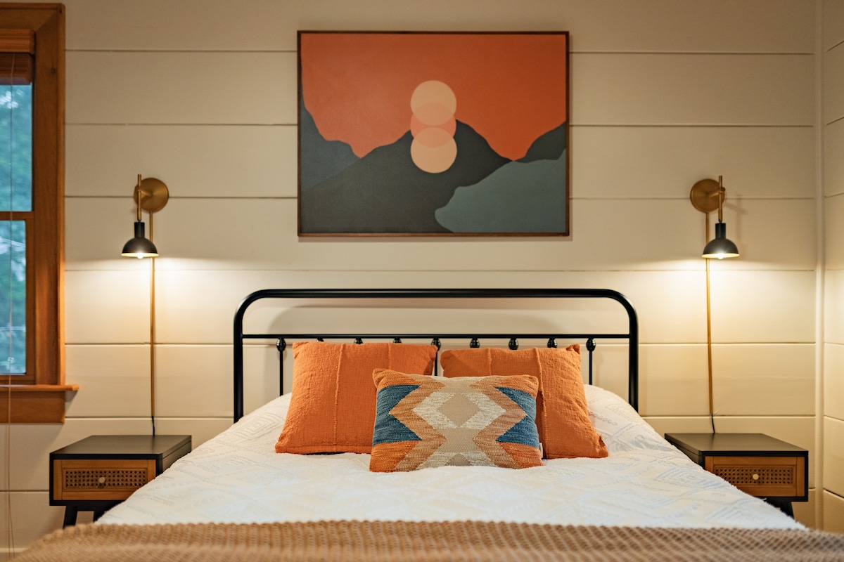 ವೈಬ್ ದಿ ವಿನಿಫ್ರೆಡ್ ಮೂಲಕ ವಾಸಿಸುತ್ತದೆ! ☀️2 ಹಾಸಿಗೆ | 2 ಸ್ನಾನದ ಮೌಂಟೇನ್ ಕ್ಯಾಬಿನ್ ☀️ಹಾಟ್ ಟಬ್ ☀️ಹೊಸ ಅಡುಗೆಮನೆ ☀️ಎಕ್ಲೆಕ್ಟಿಕ್ | ಆರಾಮದಾಯಕ ☀️ಸೋಲೋ ಸ್ಟೌ ಫೈರ್ ಪಿಟ್ ☀️3 ಡೆಕ್ಗಳು ☀️ಶಫಲ್ ಬೋರ್ಡ್, ಪ್ಯಾಕ್ಮ್ಯಾನ್, ಸಂಪರ್ಕಿಸಿ 4 ☀️ರೆಕಾರ್ಡ್ ಪ್ಲೇಯರ್ ☀️ಮಿಡ್ಸೆಂಚುರಿ ಆಧುನಿಕ ವಿನ್ಯಾಸ ಗ್ವಾಟೆಮಾಲಾ, ಇಟಲಿ ಮತ್ತು ಮಿಡ್ವೆಸ್ಟ್ನಿಂದ ಸ್ಥಳೀಯ ತಾಣಗಳಿಂದ ಸಂಗ್ರಹಿಸಲಾದ ವಸ್ತುಗಳು (ಅಲ್ಲಿ ನಾವು ಮನೆ ಎಂದು ಕರೆಯುತ್ತೇವೆ). ಪ್ರತಿ ರೂಮ್ನಲ್ಲಿ ವಿನ್ಯಾಸದ ಕ್ಷಣವನ್ನು ಹುಡುಕಲು ನೀವು ಖಚಿತವಾಗಿರುತ್ತೀರಿ. ನವೀಕರಿಸಿದ ಅಡುಗೆಮನೆ ಮತ್ತು ಸ್ನಾನಗೃಹಗಳ ಹೊರತಾಗಿಯೂ, ಈ ಕ್ಯಾಬಿನ್ ಹೊರಹೊಮ್ಮುವ ಬೇಸಿಗೆಯ ಕ್ಯಾಂಪ್ ನಾಸ್ಟಾಲ್ಜಿಯಾ ನಿಮಗೆ ವಿಚಿತ್ರವೆನಿಸುತ್ತದೆ ಮತ್ತು ಪುನಃಸ್ಥಾಪನೆಯಾಗುತ್ತದೆ.