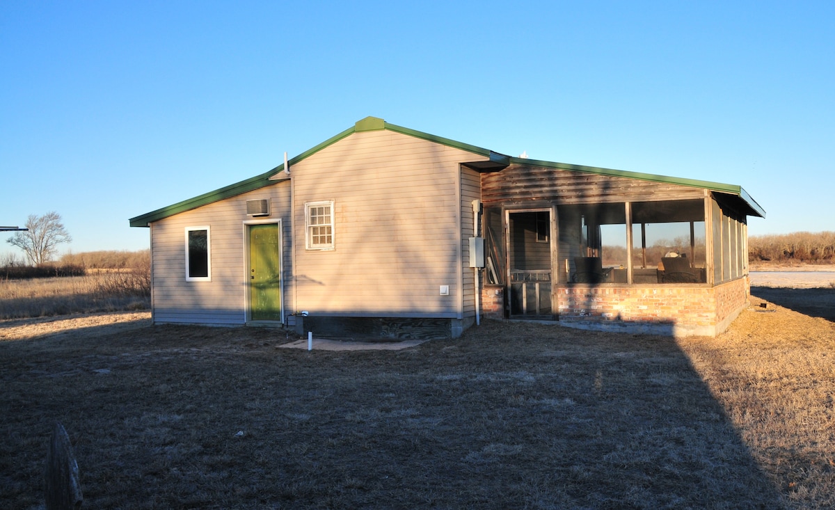ಕ್ರೇನ್ ಸೀಸನ್ ಹಾಟ್ ಸ್ಪಾಟ್! ಅಪಾರ್ಟ್ಮೆಂಟ್ ಹೊಸದಾಗಿ ನಿರ್ಮಿಸಲಾದ ಶೆಡ್ನಲ್ಲಿದೆ. ಇದು ಒಂದು ಮಲಗುವ ಕೋಣೆ, ಒಂದು ಸ್ನಾನಗೃಹ (ಶವರ್ ಮಾತ್ರ, ಟಬ್ ಇಲ್ಲ) ಮತ್ತು ಎಲ್ಲಾ ಉಪಕರಣಗಳನ್ನು ಹೊಂದಿರುವ ದೊಡ್ಡ ಲಿವಿಂಗ್ ರೂಮ್ ಮತ್ತು ಅಡುಗೆಮನೆಯನ್ನು ಹೊಂದಿದೆ (ಡಿಶ್ವಾಶರ್ ಇಲ್ಲ). ಶಾಂತ ರಾತ್ರಿಗಳು ವಿಶ್ರಾಂತಿ ಮತ್ತು ಮೀನುಗಾರಿಕೆಗಾಗಿ ಶೆಡ್ನ ಹೊರಗಿನ ಹುಲ್ಲುಗಾವಲಿನಲ್ಲಿ ಖಾಸಗಿ ಕೊಳವಿದೆ. ಪ್ರಕೃತಿ ಮತ್ತು ಪಕ್ಷಿ ವೀಕ್ಷಣೆಗೆ ಇದು ಪರಿಪೂರ್ಣ ಸೆಟ್ಟಿಂಗ್ ಆಗಿದೆ! ನಾವು ಸಾಕುಪ್ರಾಣಿಗಳನ್ನು $ 25 ಶುಲ್ಕಕ್ಕೆ ಅನುಮತಿಸುತ್ತೇವೆ. ಪ್ರಾಪರ್ಟಿಯಲ್ಲಿ ತುಂಬಾ ಸ್ನೇಹಪರ ಫಾರ್ಮ್ ಡಾಗ್ ಇದೆ, ಆದ್ದರಿಂದ ಇದು ನಿಮಗೆ ಸಮಸ್ಯೆಯಾಗುತ್ತದೆಯೇ ಎಂಬುದನ್ನು ಗಮನಿಸಿ.
