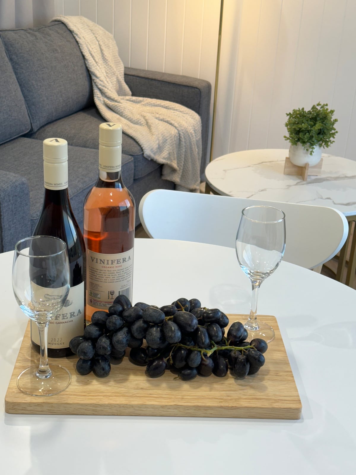 ಈ ಕೇಂದ್ರೀಕೃತ ಸ್ಥಳದಲ್ಲಿ ಸೊಗಸಾದ ಅನುಭವವನ್ನು ಆನಂದಿಸಿ. ಪರಿಪೂರ್ಣ ದಂಪತಿಗಳು ತಪ್ಪಿಸಿಕೊಳ್ಳುತ್ತಾರೆ. ಲೆದರ್ ಲೌಂಜ್, ಬಿಸಿಯಾದ ಥ್ರೋ, ಎಲೆಕ್ಟ್ರಿಕ್ ಲಾಗ್ ಫೈರ್ಪ್ಲೇಸ್ ಮತ್ತು RC A/C ಹೊಂದಿರುವ ಆರಾಮದಾಯಕ ಲಿವಿಂಗ್ ರೂಮ್. ಅಡುಗೆಮನೆಯು ಫ್ರೀಜರ್, ಡಿಶ್ವಾಶರ್, ಮೈಕ್ರೊವೇವ್, ಕೆಟಲ್, ಟೋಸ್ಟರ್, ಕಾಫಿ ಯಂತ್ರ ಮತ್ತು ಏರ್ ಫ್ರೈಯರ್ನೊಂದಿಗೆ ಪೂರ್ಣ ಗಾತ್ರದ ಫ್ರಿಜ್ ಅನ್ನು ಹೊಂದಿದೆ. ಲಕ್ಸ್ ಬೌಡೊಯಿರ್ ಎಲೆಕ್ಟ್ರಿಕ್ ಬ್ಲಾಂಕೆಟ್, ಅಂತರ್ನಿರ್ಮಿತ ನಿಲುವಂಗಿ ಮತ್ತು ಟಿವಿ ಹೊಂದಿರುವ ಕಿಂಗ್ ಬೆಡ್ ಅನ್ನು ಒಳಗೊಂಡಿದೆ. ಫ್ರೀಸ್ಟ್ಯಾಂಡಿಂಗ್ ಟಬ್ ಮತ್ತು ಅವಳಿ ಶವರ್ ಹೊಂದಿರುವ ದೊಡ್ಡ ಬಾತ್ರೂಮ್. ಪ್ರತ್ಯೇಕ WC. BBQ, ಸಿಂಕ್, ವಾಷರ್ ಮತ್ತು ಡ್ರೈಯರ್ ಹೊಂದಿರುವ ಖಾಸಗಿ ಅಲ್ಫ್ರೆಸ್ಕೊ.