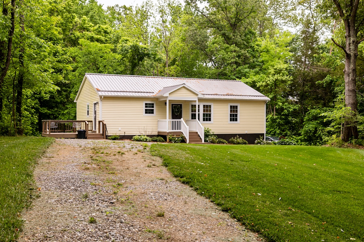 Unwind in a private mini retreat- enjoy waking up in the king size bed to forest views, birdsong, and a front porch made for sitting! Listen to rain on the tin roof or enjoy a bonfire in the fire pit after taking a stroll down our private wooded trails or wading in the creek. Stay connected with WiFi, or just cozy up with a book or a game. Wildlife abounds on this woodland plant farm. Approximately 15 minutes from downtown Blackstone and Ft. Pickett, this is the perfect place to get away!