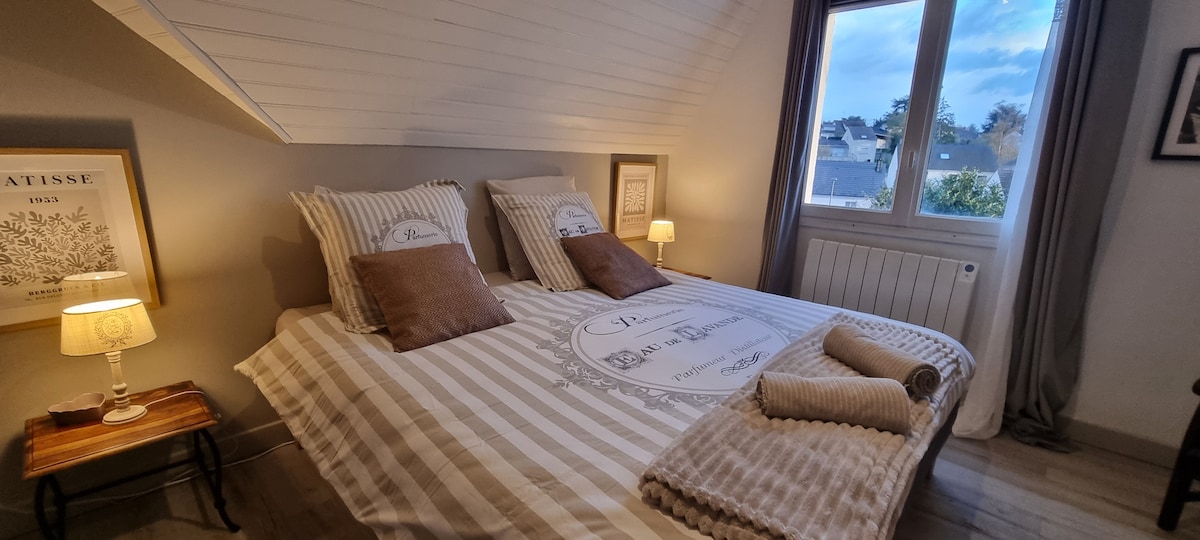 La villa Anastasia climatisée, proche des bords de Seine, vous accueillera dans le plus grand confort. Vous profiterez d'un grand séjour donnant directement sur son jardin privatif, de ses 2 grandes chambres ( avec au choix pour chaque chambre 2 lits en 90x200 cm ou 1 lit en 160x200), de sa cuisine entièrement équipée et de sa très belle salle de bain. La villa bénéficie de la fibre, de 2 emplacements de stationnement, d'un accès privé. La villa est une partie indépendante d'une grande maison.