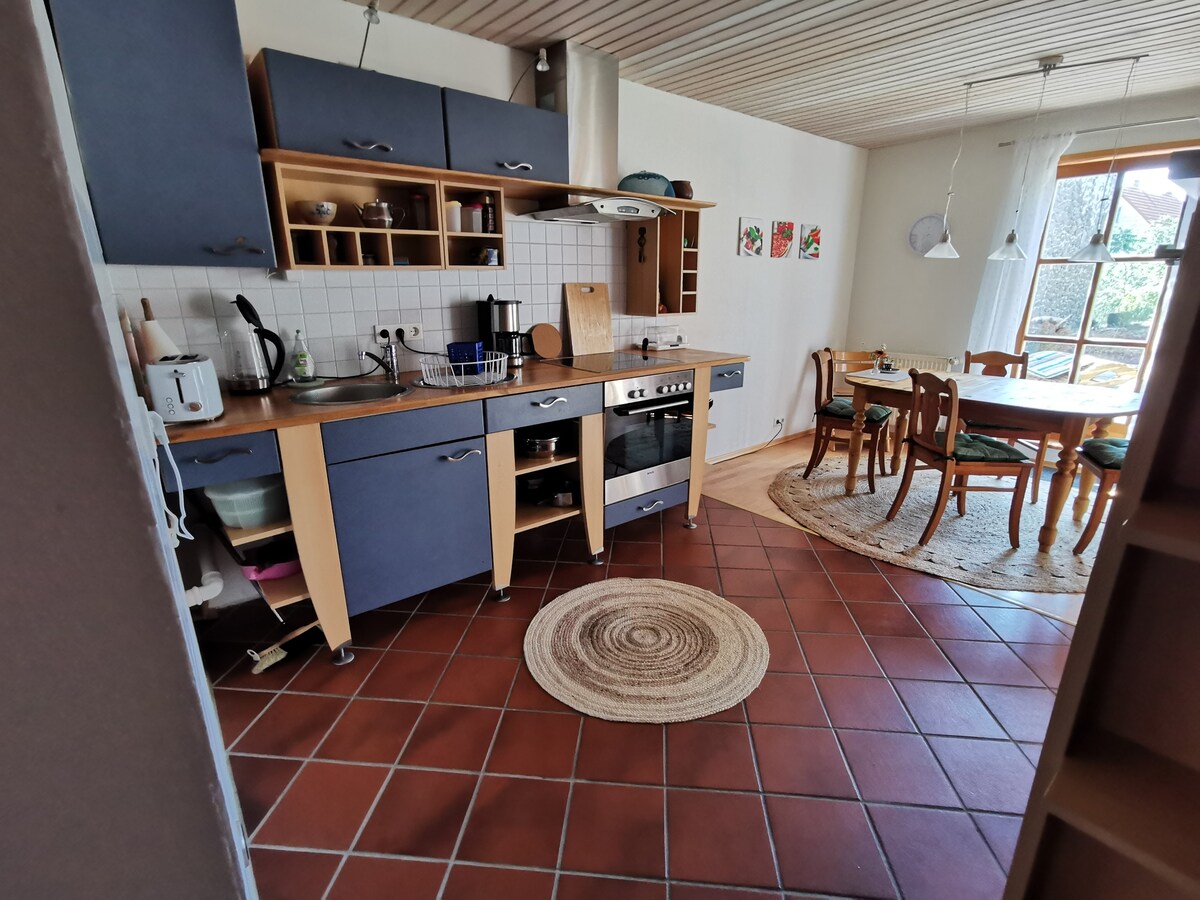 ವಿನ್ಯಾಸವು ಪ್ರಕೃತಿಯನ್ನು ಪೂರೈಸುತ್ತದೆ - ಫ್ಲೇರ್ ಮತ್ತು ಕ್ಲಾಸ್ನೊಂದಿಗೆ ಆರಾಮದಾಯಕ ಅಪಾರ್ಟ್ಮೆಂಟ್ (ಅಂದಾಜು 50 ಚದರ ಮೀಟರ್). ಬಾಕ್ಸ್ ಸ್ಪ್ರಿಂಗ್ ಹಾಸಿಗೆಗಳು + ಪ್ರೀತಿಯ ವಿವರಗಳು ಉತ್ತಮ "ಭಾವನೆಯನ್ನು-ಉತ್ತಮ ವಾತಾವರಣ" ವನ್ನಾಗಿ ಮಾಡುತ್ತವೆ ಡೆಕ್/ವೈನ್ ರಜಾದಿನಗಳು + ಸನ್ಬಾತ್ಹೊಂದಿರುವ ಸೊಂಪಾದ ಕೊಳದ ಉದ್ಯಾನದಲ್ಲಿ ಖಾಸಗಿ ವಾಕ್-ಇನ್ ಪ್ರವೇಶದ್ವಾರ ನೈಸರ್ಗಿಕ ಸ್ನಾನಗೃಹ, ಹೈಕಿಂಗ್, ಫ್ಲೈ ಫಿಶಿಂಗ್, ಹಳ್ಳಿಯಲ್ಲಿ ಬೇಟೆಯಾಡುವುದು ಉಮ್ಗೆಬ್ನಲ್ಲಿರುವ ಸುಂದರವಾದ ಸ್ಪಾಗಳು ಮತ್ತು ಸ್ಕೀ ರೆಸಾರ್ಟ್ಗಳು ಟಾಪ್ ಬೈಕ್ ಮಾರ್ಗ ನೆಟ್ವರ್ಕ್, ಉದಾ. Rhön-Expr.Bahnradweg, Rhön-Sinntal Radweg, R2 ಫುಲ್ಡಾ, ರೋನ್, FFM + ವುರ್ಜ್ಬರ್ಗ್ ಅನ್ನು ಸುಲಭವಾಗಿ ಪ್ರವೇಶಿಸಬಹುದು. ಅಪಘಾತದ ಅಪಾಯ ಉದಾ. ಕೊಳದಲ್ಲಿ ಅಂಬೆಗಾಲಿಡುವವರಿಗೆ! 1 ಸಾಕುಪ್ರಾಣಿ ವಿಲ್ಕ್.