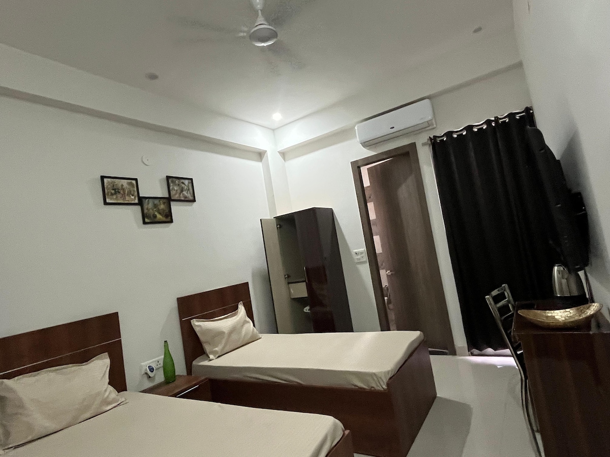 This stylish place to stay is perfect for group trips.Kick back and relax in this calm, stylish space. "This stylish place to stay is perfect for Corporate Executives, Couples, Travellers for both long and short stays. Place is equipped with in room kitchen, Refrigerator, Smart TV, uninterrupted high-speed Wi-Fi, 24 hrs. power back up, hot water supply and all other modern amenities. Property located in City Center & on Main Golf Course Road close, major hospitals and Joints. 24 hours security.