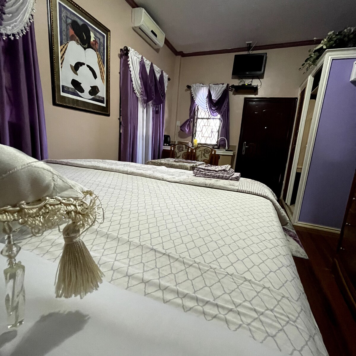 ಕಾರ್ಲ್ಟನ್ ಎಕ್ಸಿಕ್ಯುಟಿವ್ ಸೂಟ್ಗಳಿಗೆ ಸುಸ್ವಾಗತ, ನಮ್ಮ ಹೊಸ 12 ರೂಮ್ ಮಿನಿ ಹೋಟೆಲ್ ಮತ್ತು ಬೆಡ್ ಅಂಡ್ ಬ್ರೇಕ್ಫಾಸ್ಟ್, ಗಯಾನಾದ ಜಾರ್ಜ್ಟೌನ್ನಲ್ಲಿರುವ ಕ್ವೀನ್ಟೌನ್ನ ಶಾಂತಿಯುತ ಮತ್ತು ಉನ್ನತ-ಮಟ್ಟದ ನೆರೆಹೊರೆಯಲ್ಲಿ ಕೇಂದ್ರೀಕೃತವಾಗಿದೆ. ಗೆಸ್ಟ್ಗಳು ಪ್ರಮುಖ ವ್ಯವಹಾರ ಕೇಂದ್ರಗಳಿಂದ 10 ನಿಮಿಷಗಳಿಗಿಂತ ಕಡಿಮೆ ದೂರದಲ್ಲಿದ್ದಾರೆ ಮತ್ತು 8 ನಿಮಿಷಗಳಲ್ಲಿ ದಿ ಸೀವಾಲ್ಗೆ ನಡೆಯುತ್ತಾರೆ, ಇದು ಪ್ರಸ್ತುತ ಸ್ಥಳೀಯರ ನೆಚ್ಚಿನ ರಾತ್ರಿಜೀವನದ ಕ್ರಿಯೆಯ ಕೇಂದ್ರವಾಗಿದೆ. ಪ್ರತಿ ರೂಮ್ ಅನ್ನು ನಿಮ್ಮ ಮನಸ್ಸಿನಲ್ಲಿ ಸುಂದರವಾಗಿ ವಿನ್ಯಾಸಗೊಳಿಸಲಾಗಿದೆ ಮತ್ತು ನಿಮ್ಮ ಅಗತ್ಯಗಳನ್ನು 100% ಪೂರೈಸಲು ನಮ್ಮ ಸುರಕ್ಷಿತ, ಬೆಚ್ಚಗಿನ ಮತ್ತು ಸ್ನೇಹಪರ ಸಿಬ್ಬಂದಿ ಇಲ್ಲಿದ್ದಾರೆ.
