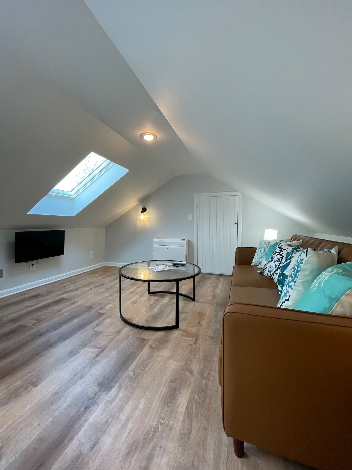 ಮೊದಲ ಮಹಡಿಯಲ್ಲಿರುವ ಪ್ರೈವೇಟ್ ಸೂಟ್ ಗೆಸ್ಟ್ಗಳು ಇಡೀ ಸ್ಥಳದ ವಿಶೇಷ ಬಳಕೆಯನ್ನು ಹೊಂದಿದ್ದಾರೆ. ಎರಡನೇ ಮಹಡಿಯು ನನ್ನ ನಿವಾಸವಾಗಿದೆ. ಸೂಟ್ ಕ್ವೀನ್ ಟೆಂಪೆಡಿಕ್ ಹಾಸಿಗೆ ಹೊಂದಿರುವ ಮಲಗುವ ಕೋಣೆ, ಕ್ವೀನ್ ಸ್ಲೀಪ್ ಸೋಫಾ ಹೊಂದಿರುವ ಲಿವಿಂಗ್ ರೂಮ್, ಸಣ್ಣ ಅಡುಗೆಮನೆ ಮತ್ತು ಸ್ನಾನಗೃಹವನ್ನು ಹೊಂದಿದೆ. ಅಡುಗೆಮನೆಯು ಸಣ್ಣ ರೆಫ್ರಿಜರೇಟರ್, ಮೈಕ್ರೊವೇವ್, ಕಾಫಿ ಮೇಕರ್, ಕೆಟಲ್, ಸಿಂಗಲ್ ಬರ್ನರ್ ಕುಕ್ಟಾಪ್ ಮತ್ತು ಕ್ರಾಕ್ಪಾಟ್ ಅನ್ನು ಹೊಂದಿದೆ. ಒಳಾಂಗಣ ಸೆಟ್ ಮತ್ತು ಗ್ಯಾಸ್ ಗ್ರಿಲ್ ಹೊಂದಿರುವ ಮೇಲಿನ ಡೆಕ್ಗೆ (ಹಂಚಿಕೊಂಡ ಸ್ಥಳ) ಗೆ ಗೆಸ್ಟ್ಗಳು ಪ್ರವೇಶವನ್ನು ಹೊಂದಿರುತ್ತಾರೆ.