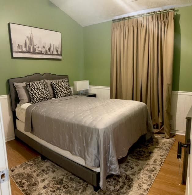 This bright large, newly decorated room with hardwood floors throughout. Fully furnished with plenty closet space,and tall chest for storage. Bring your media devices for Wi-Fi access to watch your favorite movies shows and get a little work done if need be. Semi shared bathroom ( used by one other person) access to common areas. Clean Quiet peaceful with positive energy and good vibes allowed. Great for traveling Nurses (15 mins from Peidmont and Southern regional or on assignment employees.
