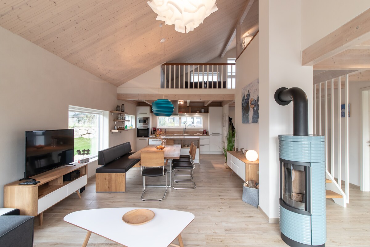 "ಫೆಲ್ಡ್ರೇನ್" – ಗ್ರಾಮಾಂತರದಲ್ಲಿರುವ ಆರಾಮದಾಯಕ ಮರದ ಮನೆ, ಕೋಮು ಸೌನಾ ಮತ್ತು ಖಾಸಗಿ ಉದ್ಯಾನದೊಂದಿಗೆ ಒಂದು ಸಮೂಹದ ಭಾಗವಾಗಿದೆ. ದೊಡ್ಡ ಕಿಟಕಿಗಳು ಕುದುರೆ ಪ್ಯಾಡಾಕ್, ಪ್ರಕೃತಿ ಮತ್ತು ಶಾಂತಿಯ ನೋಟವನ್ನು ತೆರೆಯುತ್ತವೆ. ಸುಮಾರು 60 m² ನಲ್ಲಿ, 4 ಅತಿಥಿಗಳು (+2 ಹೆಚ್ಚುವರಿ ಹಾಸಿಗೆಗಳು) ಆರಾಮದಾಯಕವಾಗಿರಬಹುದು. ಗ್ಯಾಲರಿಯಲ್ಲಿ ಮಕ್ಕಳಿಗಾಗಿ ಚಿಲ್ ಪ್ರದೇಶ, ಖಾಸಗಿ ಸೌನಾ ವೆಲ್ನೆಸ್ ಸಮಯವನ್ನು ಕಾಯ್ದಿರಿಸಬಹುದು, ಮಕ್ಕಳಿಗೆ ಸ್ನೇಹಪರವಾದ ಕಡಲತೀರವು ಕಾಲ್ನಡಿಗೆಯಲ್ಲಿ 10 ನಿಮಿಷಗಳಲ್ಲಿ ತಲುಪಬಹುದು. ಲಾಂಡ್ರಿ ಪ್ಯಾಕೇಜ್ಗಳನ್ನು ಶುಲ್ಕಕ್ಕೆ ಬುಕ್ ಮಾಡಬಹುದು, ವಿನಂತಿಯ ಮೇರೆಗೆ ಮುಂಚಿತವಾಗಿ ಚೆಕ್-ಇನ್ ಮತ್ತು ತಡವಾಗಿ ಚೆಕ್-ಔಟ್ ಮಾಡಬಹುದು.