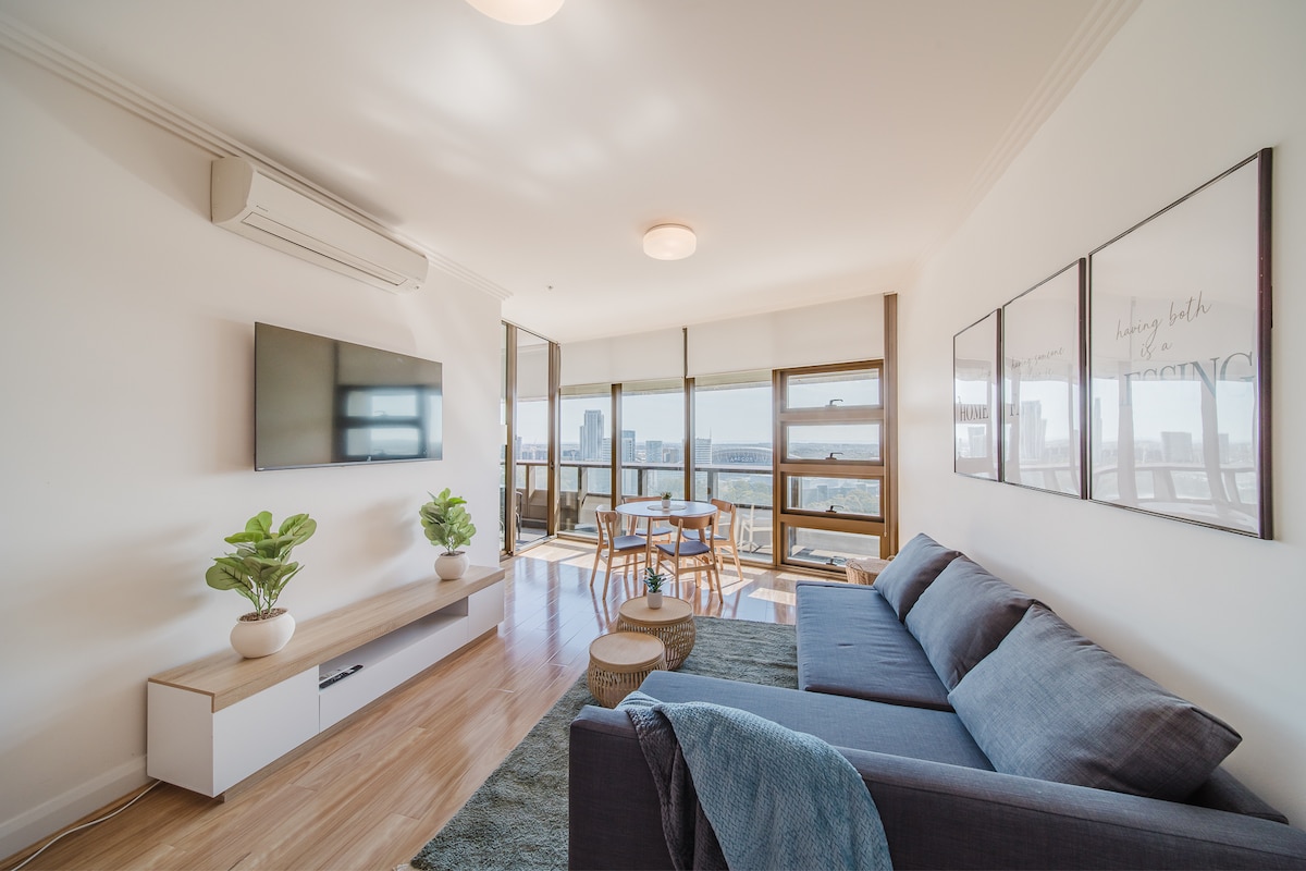 ಹೆಚ್ಚು ✨ವಾಸ್ತವ್ಯ ಮಾಡಿ, ಸುಲಭವಾಗಿ ಪ್ರಯಾಣಿಸಿ✨ ನಗರದಿಂದ ತಪ್ಪಿಸಿಕೊಳ್ಳಲು ಯೋಜಿಸುತ್ತಿದ್ದೀರಾ? ಹೋಂಬುಶ್ನಲ್ಲಿ ಪಾರ್ಕಿಂಗ್ ಹೊಂದಿರುವ ವಿಹಂಗಮ ನೋಟದ ರಿಟ್ರೀಟ್ಗೆ ಎಸ್ಕೇಪ್ ಮಾಡಿ. ತಡೆರಹಿತ ನಗರ ಪ್ರವೇಶಕ್ಕಾಗಿ ಹೋಮ್ಬುಶ್ ನಿಲ್ದಾಣಕ್ಕೆ ಕೇವಲ 10 ನಿಮಿಷಗಳ ನಡಿಗೆ. ಕಾರಿನ ಮೂಲಕ ಕೇವಲ 9 ನಿಮಿಷಗಳ ದೂರದಲ್ಲಿರುವ ಬಿಸೆಂಟೆನಿಯಲ್ ಪಾರ್ಕ್ನಲ್ಲಿ ರಮಣೀಯ ನಡಿಗೆಯೊಂದಿಗೆ ನಿಮ್ಮ ದಿನವನ್ನು ಪ್ರಾರಂಭಿಸಿ. ನಿಮ್ಮ ಆಹಾರವನ್ನು ಪಡೆದುಕೊಳ್ಳಿ ಮತ್ತು ಸಿಡ್ನಿ ಒಲಿಂಪಿಕ್ ಪಾರ್ಕ್ ಅಕ್ವಾಟಿಕ್ ಸೆಂಟರ್ನಲ್ಲಿ DFO ಹೋಮ್ಬುಶ್ನಲ್ಲಿ ಕ್ಯಾಶುಯಲ್ ಶಾಪಿಂಗ್ ಅನ್ನು ಆನಂದಿಸಿ ಮತ್ತು ಸಿಡ್ನಿ ಒಲಿಂಪಿಕ್ ಪಾರ್ಕ್ ಅಕ್ವಾಟಿಕ್ ಸೆಂಟರ್ನಲ್ಲಿ ವಿಶ್ರಾಂತಿ ಪಡೆಯಿರಿ. ನಮ್ಮ ರೂಫ್ಟಾಪ್ ಮನರಂಜನಾ ಪ್ರದೇಶದಲ್ಲಿ ನಿಮ್ಮ ದಿನವನ್ನು ಕೊನೆಗೊಳಿಸಿ. ಆರಾಮದಾಯಕ ನಗರ ತಪ್ಪಿಸಿಕೊಳ್ಳುವಿಕೆಯನ್ನು ಬಯಸುವ ದಂಪತಿಗಳು ಅಥವಾ ಏಕಾಂಗಿ ಪ್ರಯಾಣಿಕರಿಗೆ ಸೂಕ್ತವಾಗಿದೆ.
