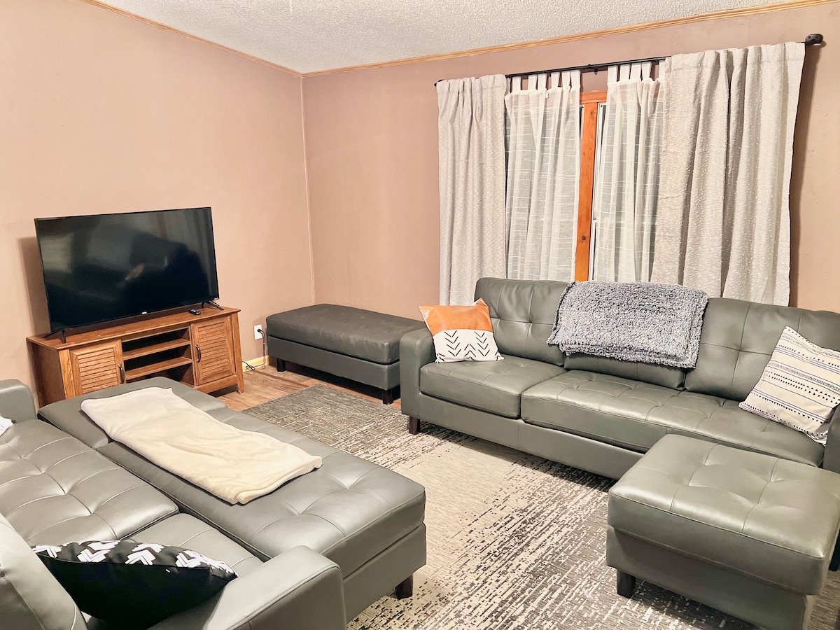 ನೀವು ಈ ಮನೆಯನ್ನು ಅದರ ಸ್ಥಳ, ಸೌಕರ್ಯ ಮತ್ತು ಅನುಕೂಲತೆಗಾಗಿ ಇಷ್ಟಪಡುತ್ತೀರಿ. ಹೆಚ್ಚುವರಿ ನಿದ್ರೆಯ ಸ್ಥಳಕ್ಕಾಗಿ 3 ಬೆಡ್ರೂಮ್ಗಳು ಮತ್ತು ಸನ್ರೂಮ್ನೊಂದಿಗೆ, ಪ್ರತಿಯೊಬ್ಬರೂ ಹರಡಬಹುದು ಮತ್ತು ವಿಶ್ರಾಂತಿ ಪಡೆಯಬಹುದು. ಪ್ರತಿ ಬೆಡ್ರೂಮ್ನಲ್ಲಿ ಹೆಚ್ಚಿನ ವೇಗದ ವೈಫೈ ಮತ್ತು ಟಿವಿಗಳನ್ನು ಆನಂದಿಸಿ, ಜೊತೆಗೆ ಮೂವಿ ರಾತ್ರಿಗಳಿಗಾಗಿ ದೊಡ್ಡ ಲಿವಿಂಗ್ ರೂಮ್ ಟಿವಿ. ಮುಂಭಾಗ ಮತ್ತು ಒಳಾಂಗಣವು ಬೆಳಗಿನ ಕಾಫಿ ಅಥವಾ ಸಂಜೆ ವಿಶ್ರಾಂತಿಗೆ ಸೂಕ್ತವಾಗಿವೆ. ವಾಷರ್ ಮತ್ತು ಡ್ರೈಯರ್ ಸೇರಿಸಲಾಗಿದೆ. ಕುಟುಂಬಗಳು ಅಥವಾ ಕೆಲಸದ ವಾಸ್ತವ್ಯಗಳಿಗೆ ಸೂಕ್ತವಾಗಿದೆ. ಸಾಕುಪ್ರಾಣಿಗಳಿಲ್ಲ. ಧೂಮಪಾನ ಅಥವಾ ವೇಪಿಂಗ್ ಇಲ್ಲ. ಲಿಬರಲ್ ಕನ್ಸಾಸ್ನಲ್ಲಿ ನಿಮ್ಮ ವಾಸ್ತವ್ಯಕ್ಕೆ ಸೂಕ್ತವಾಗಿದೆ