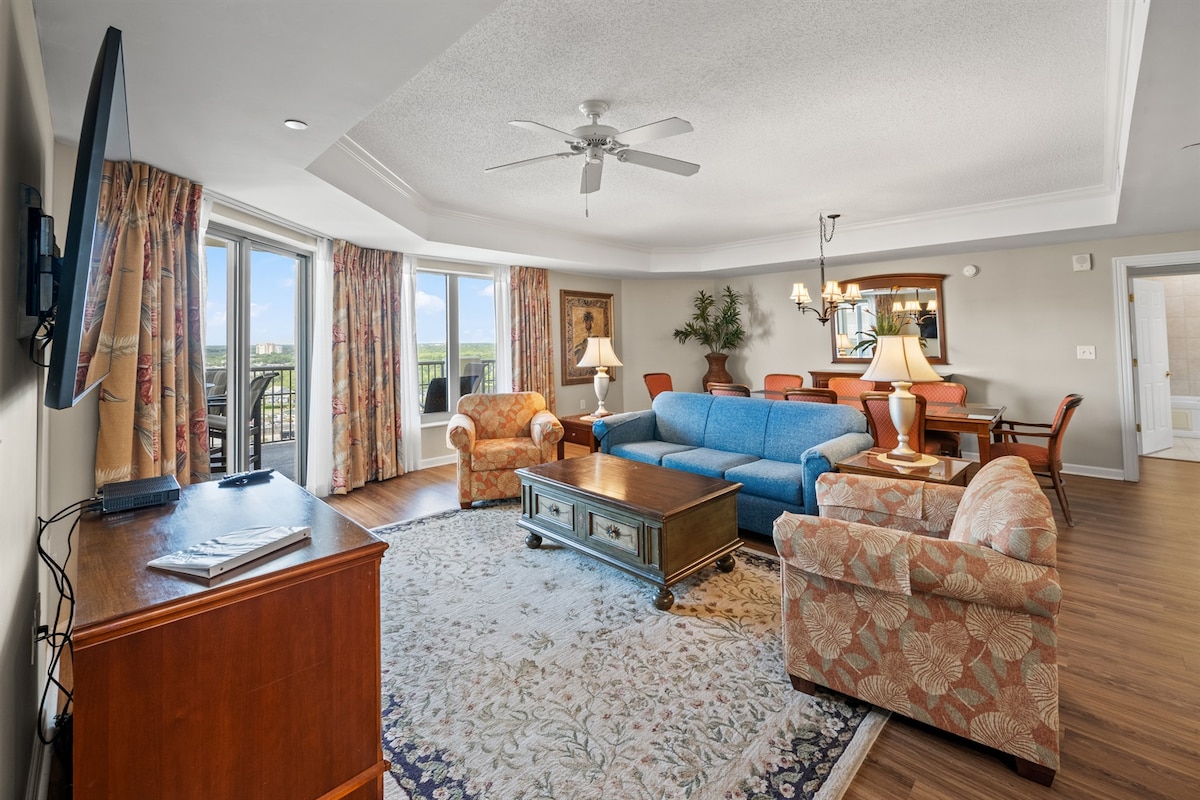 Located on 15th floor of Royale Palms, connected to Hilton. New living room furniture, big screen TV, beds, high top outdoor furniture and flooring. Free access to outdoor Royale Palms pool, and Mega Fitness Gym (about 1 mile away) Hilton & Embassy Suite pool & SPLASH PARK Not Included (They do not sell pool passes) Weekly and monthly discounts available. $500 security deposit