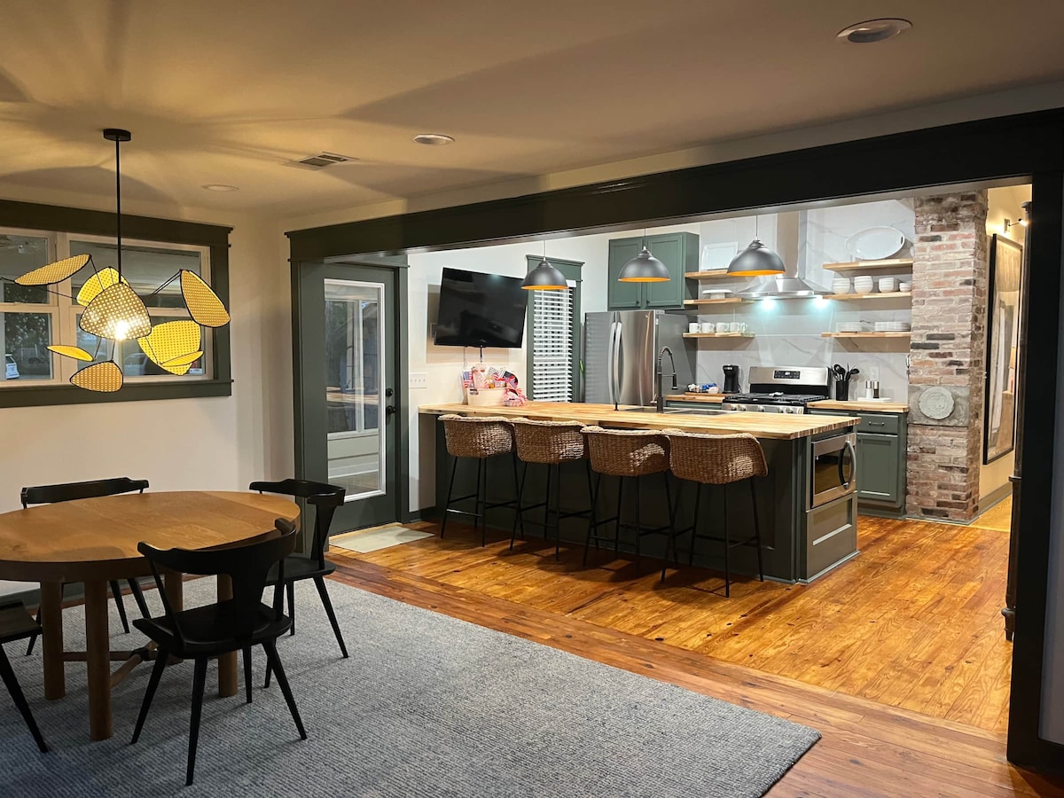 ಈ ವಿಶಾಲ ಮತ್ತು ಪ್ರಶಾಂತ ಸ್ಥಳದಲ್ಲಿ ನಿಮ್ಮ ಚಿಂತೆಗಳನ್ನು ಮರೆತುಬಿಡಿ. ಈ ನವೀಕರಿಸಿದ ಫಾರ್ಮ್ಹೌಸ್ 1900 ರದಶಕದ ಆರಂಭದಲ್ಲಿದೆ. ಹೇರಳವಾದ ಸಾಮಾನ್ಯ ಪ್ರದೇಶಗಳು ಮತ್ತು ಸಾಕಷ್ಟು ಮೂಲ ಪಾತ್ರವನ್ನು ಹೊಂದಿರುವ ಆಧುನಿಕ ಫಾರ್ಮ್ಹೌಸ್ ವೈಬ್ ಹೊಂದಿರುವ ದೊಡ್ಡ ರೂಮ್ಗಳು ಮತ್ತು ಎತ್ತರದ ಛಾವಣಿಗಳನ್ನು ಹೆಮ್ಮೆಪಡಿಸುವುದು. 4 ಬೆಡ್ರೂಮ್ಗಳು, 3.5 ಸ್ನಾನಗೃಹಗಳು, ಔಪಚಾರಿಕ ಲಿವಿಂಗ್ ರೂಮ್, ಡೆನ್, ಔಪಚಾರಿಕ ಊಟ, ಅಡುಗೆಮನೆ, ಲಾಂಡ್ರಿ ರೂಮ್, ಮುಂಭಾಗದ ಮುಖಮಂಟಪ, ನೀರಿನ ಕಾರಂಜಿ ಹೊಂದಿರುವ ಅಂಗಳ, ಹಿಂಭಾಗದ ಒಳಾಂಗಣವು ಊಟ ಮತ್ತು ಫೈರ್ ಪಿಟ್ ಟೇಬಲ್ ಹೊಂದಿರುವ 4 ಮರದ ಎಕರೆಗಳನ್ನು ಕಡೆಗಣಿಸುತ್ತದೆ. ಪ್ರೈವೇಟ್ ಕ್ವೀನ್ ಸೂಟ್ನಿಂದ ಸೈಡ್ ಪ್ಯಾಟಿಯೋ. ಮಾಲೀಕರು/ಏಜೆಂಟ್